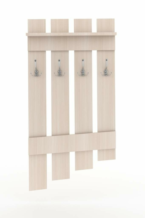 Вешалка Модерн - эта настенная вешалка для одежды, которая оборудована четырьмя трехрожковыми крючками для верхней одежды. В верхней части находится полка для головных уборов. Такая вешалка хорошо подходит для любого помещения. Практичная Вешалка Модерн прослужит Вам долгие годы.
