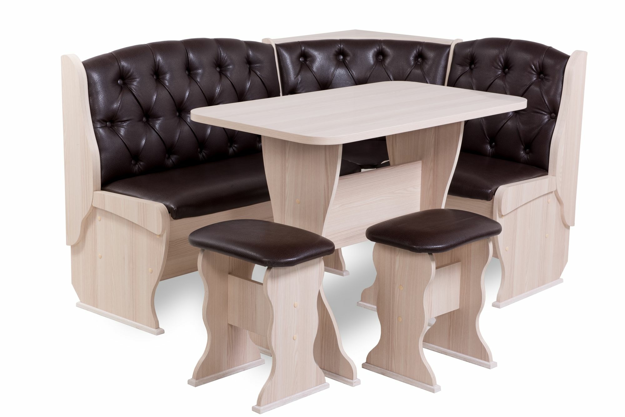 ОРХИДЕЯ ЛЮКС Набор мебели для кухни включающий в себя угловую скамью, стол и два табурета.