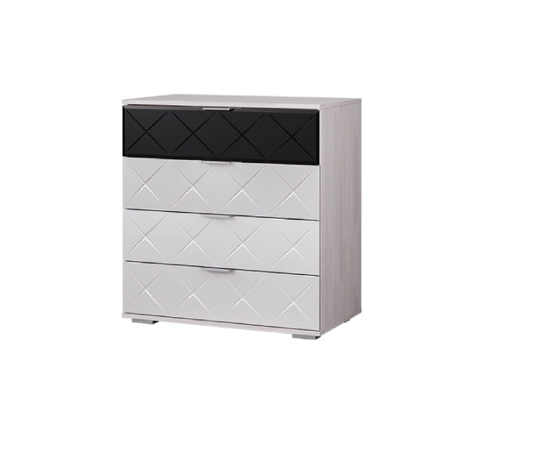 Элегантный и вместительный комод Кимберли отлично дополнит интерьер Вашей спальни. Используйте его в качестве туалетного столика или как дополнительное место для хранения вещей и принадлежностей. Четыре широких выдвижных ящика позволят разместить как необходимую одежду или постельное белье, так и косметику и другие женские аксессуары.