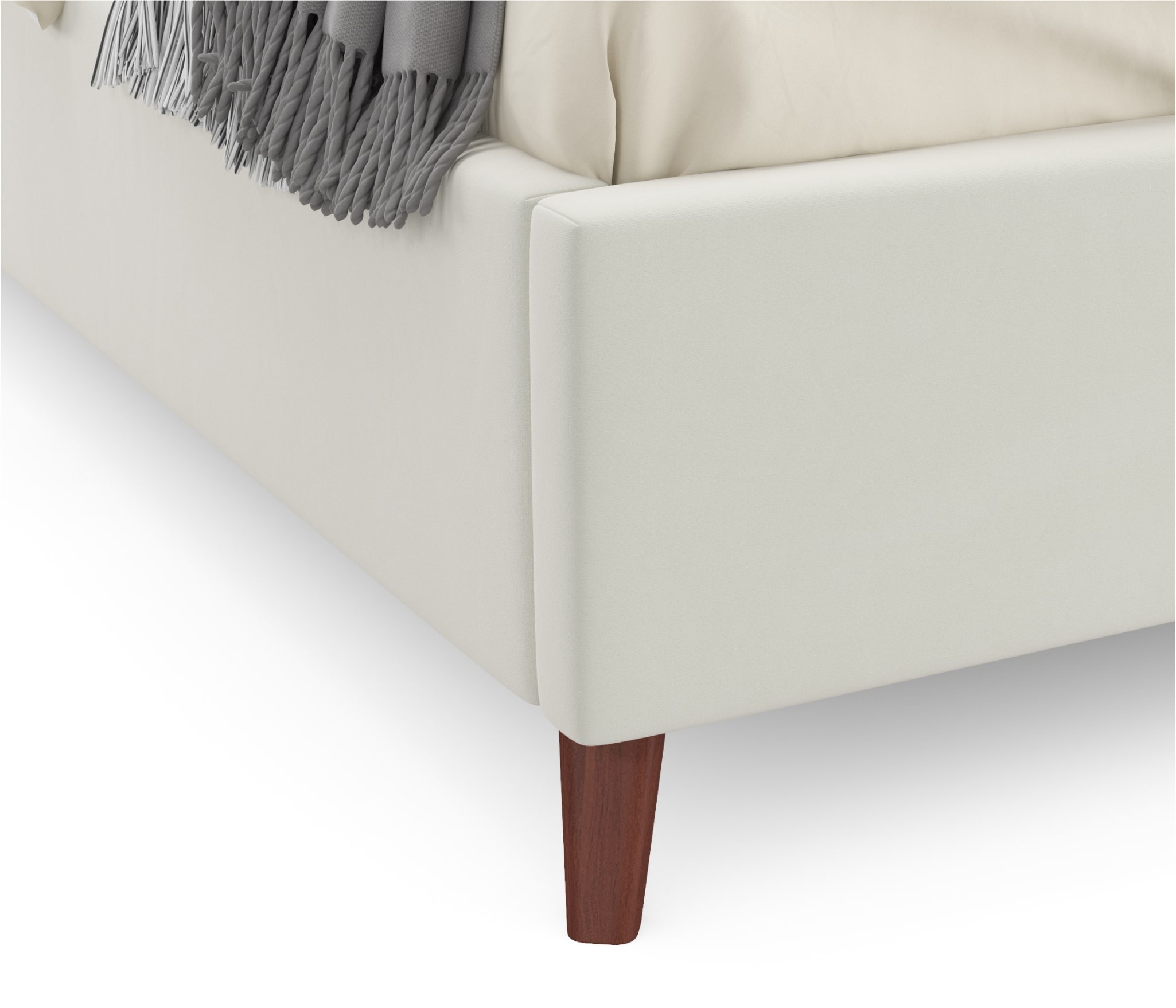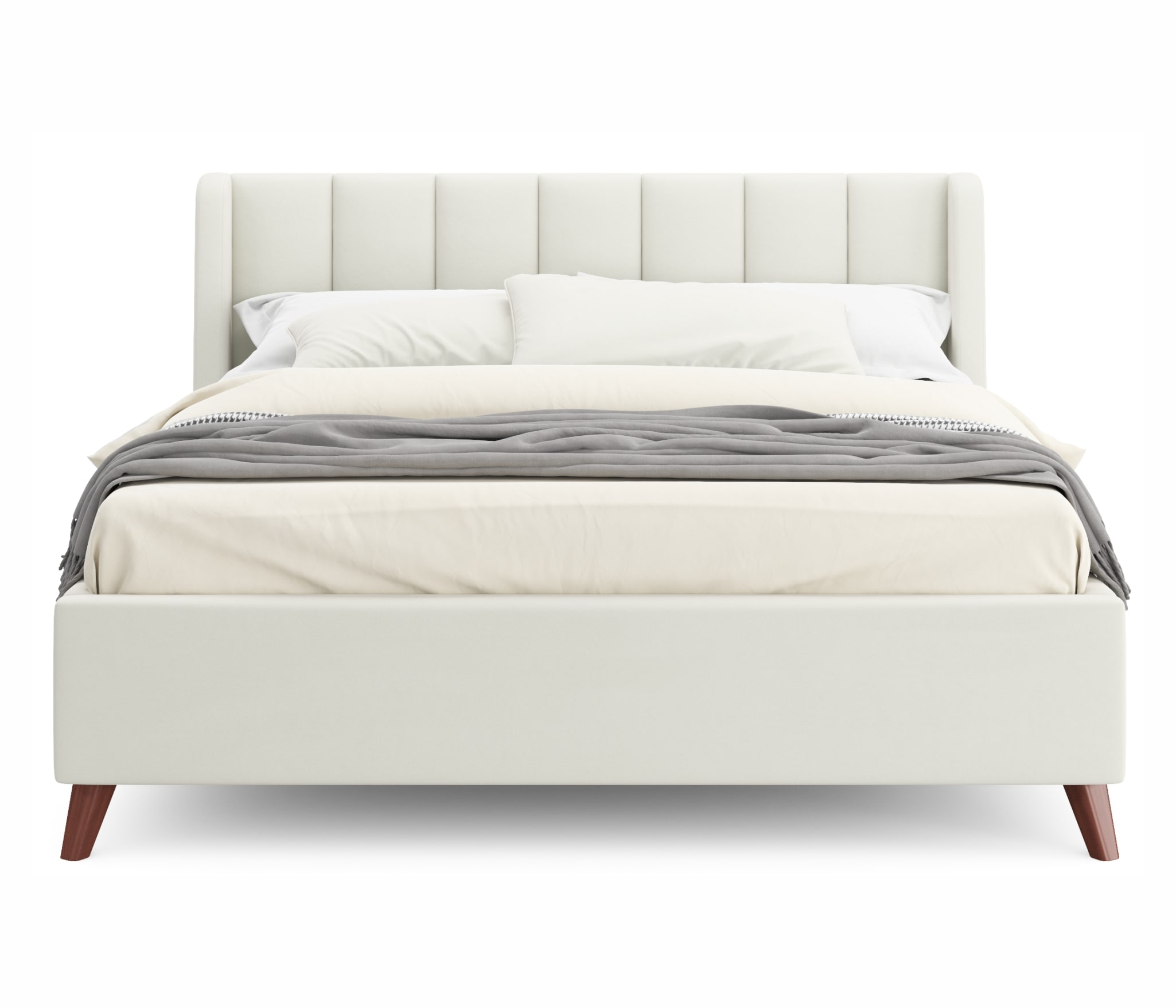 Мягкая кровать на ножках – это надежный устойчивый предмет мебели. Ножки придают кровати изящество и грацию. Подкроватное пространство легко убирать не только вручную, но и с помощью современных технологий – робота-пылесоса, который легко проходит под спальным местом.