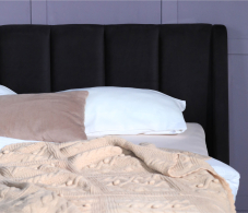 Обивка изголовья и весь периметр кровати выполнен из мебельной ткани – велюр. Это уникальный материал, который получается за счет сплетения пяти волокон одновременно. Ткань износостойкая, легко чиститься от загрязнений