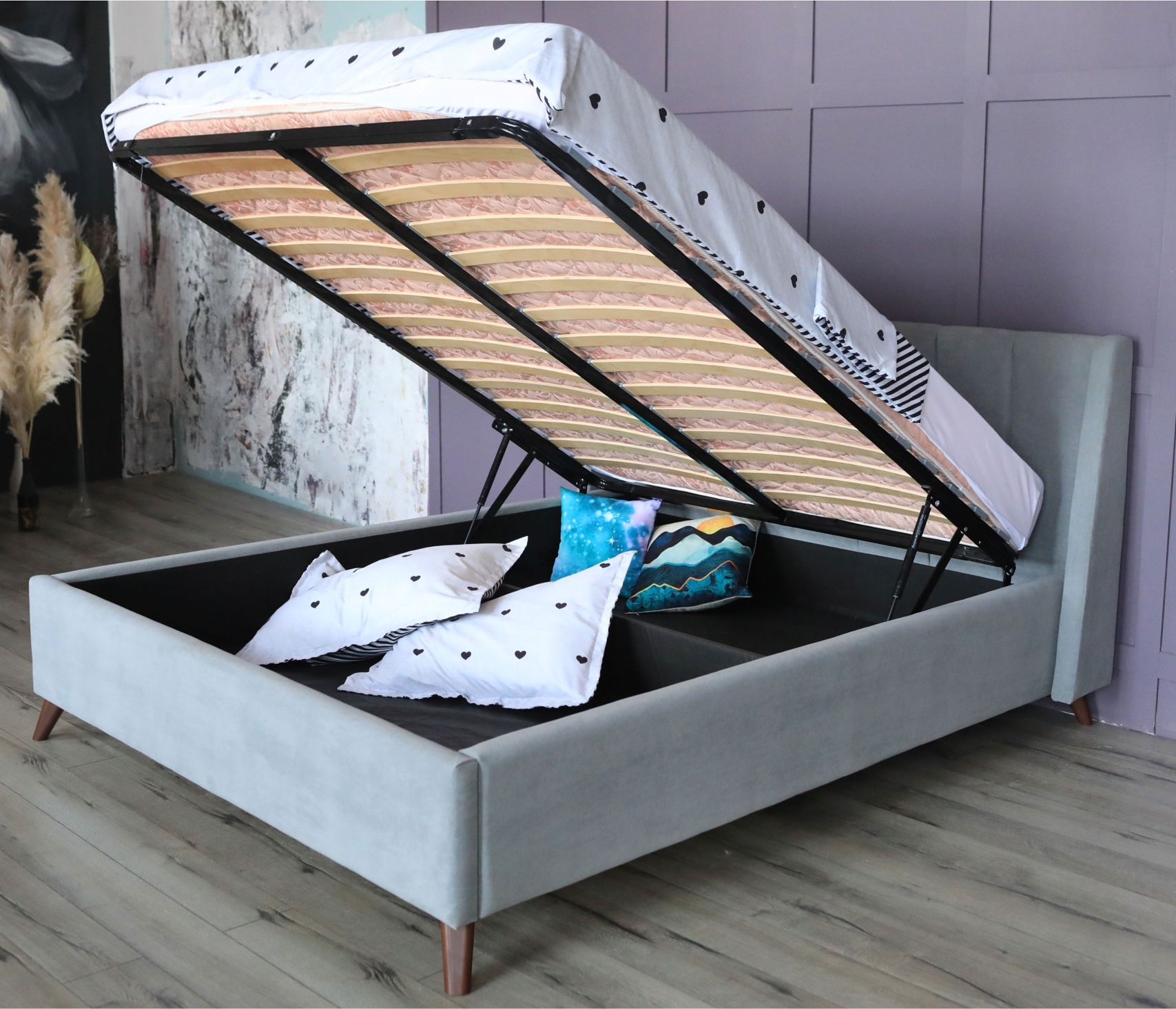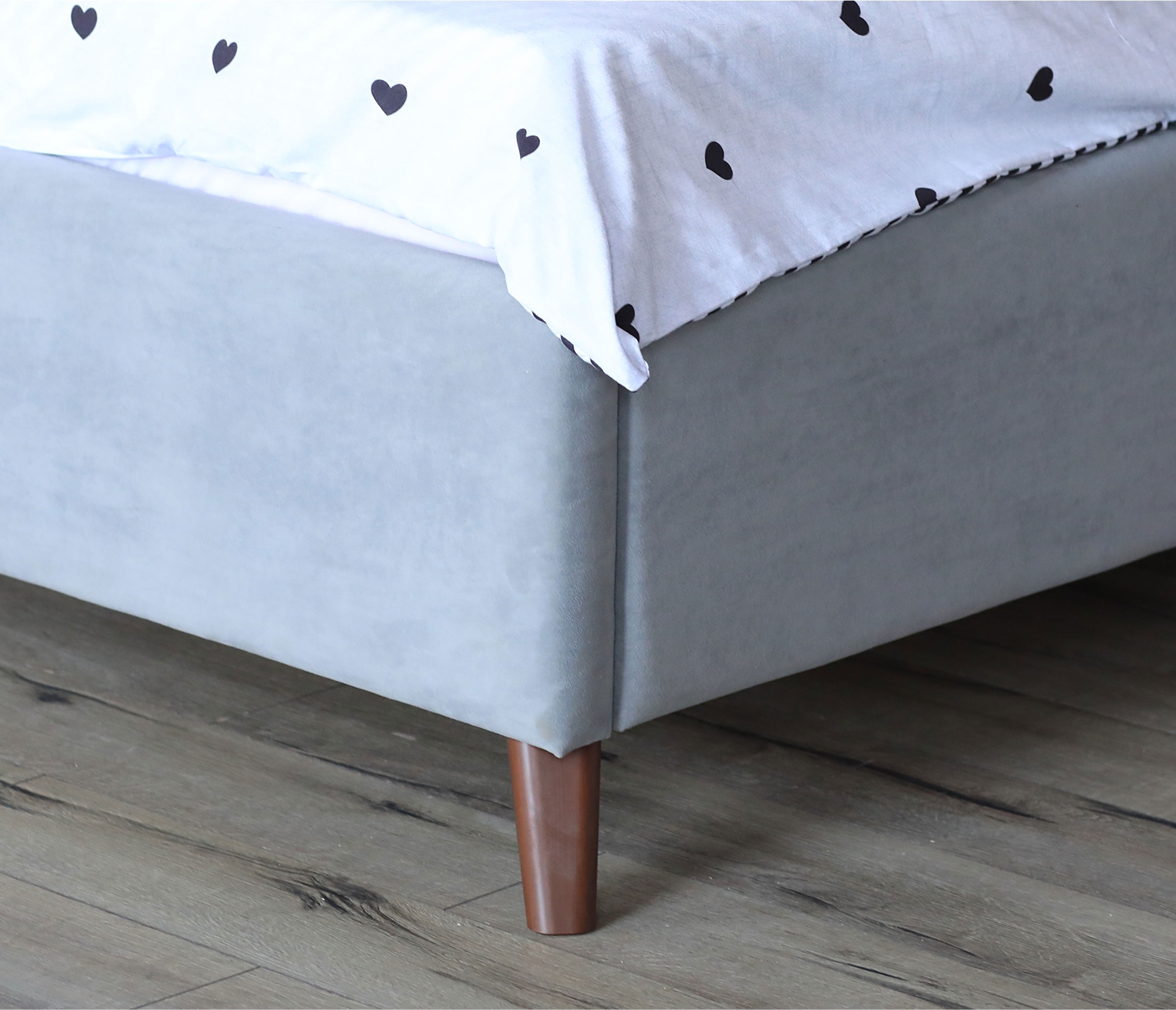 Мягкая кровать на ножках – это надежный устойчивый предмет мебели. Ножки придают кровати изящество и грацию. Подкроватное пространство легко убирать не только вручную, но и с помощью современных технологий – робота-пылесоса, который легко проходит под спальным местом.
