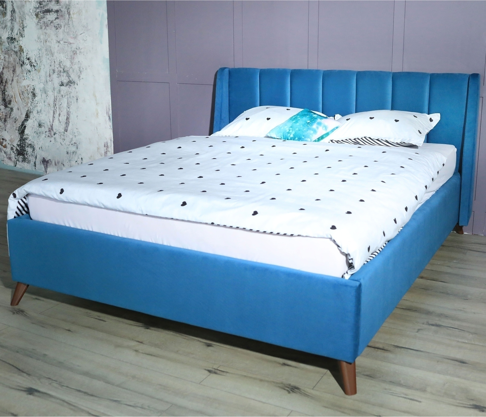Кровать имеет рельефную мягкую спинку с неглубокими стяжками, которые придают особую изысканность изголовью. Обивка изголовья и весь периметр кровати выполнен из мебельной ткани – велюр. Это уникальный материал, который получается за счет сплетения пяти волокон одновременно. Дорогая ткань велюр придает кровати более величественный благородный вид. Ткань износостойкая, легко чиститься от загрязнений (влажной тряпочкой, любыми средствами, кроме средств с растворителями), практичная, эластичная, устойчивая к ультрафиолету.