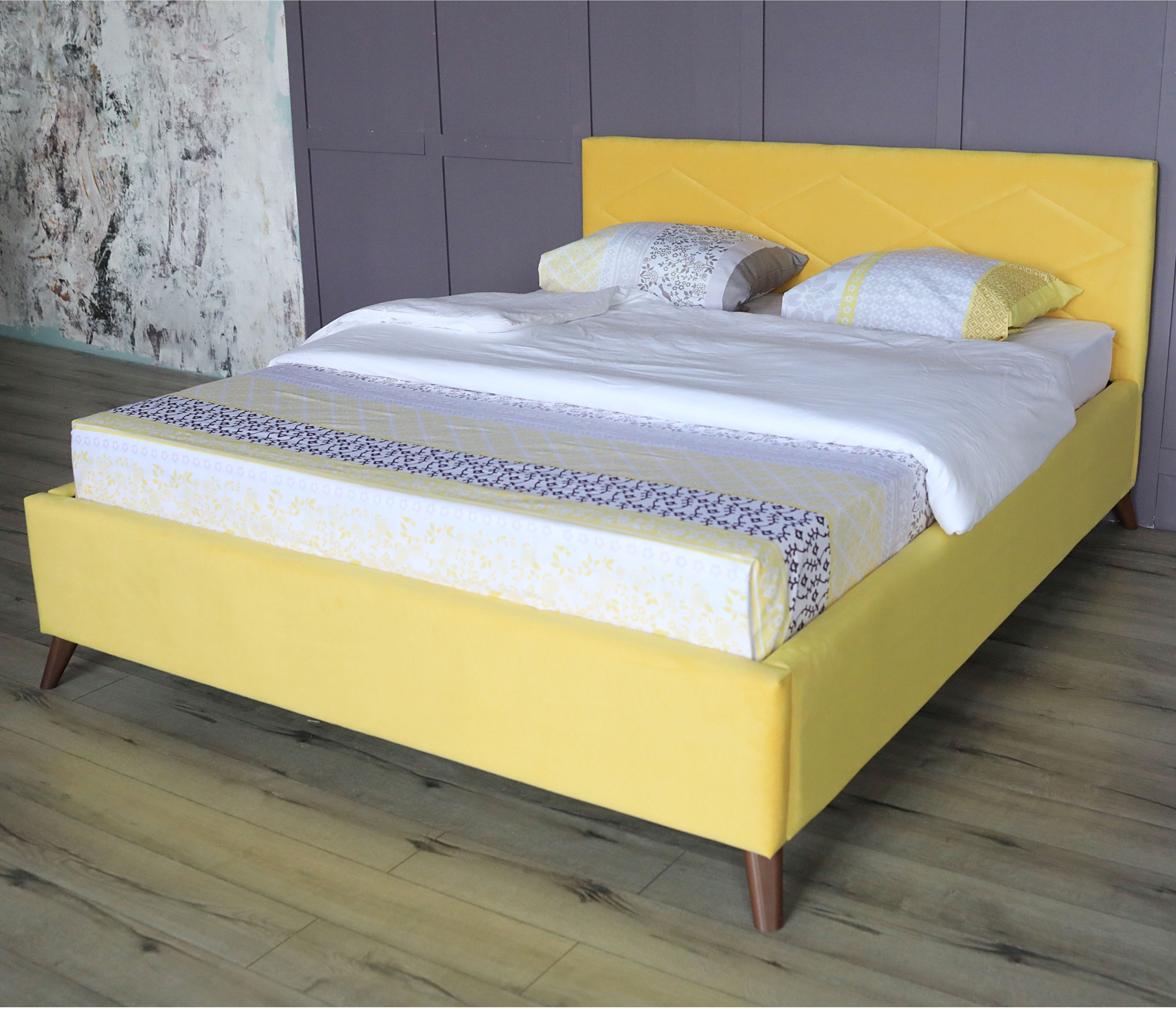 Модельный ряд кровати представлен в шести цветах – желтый, синий, морковный, бежевый, серый и темный.