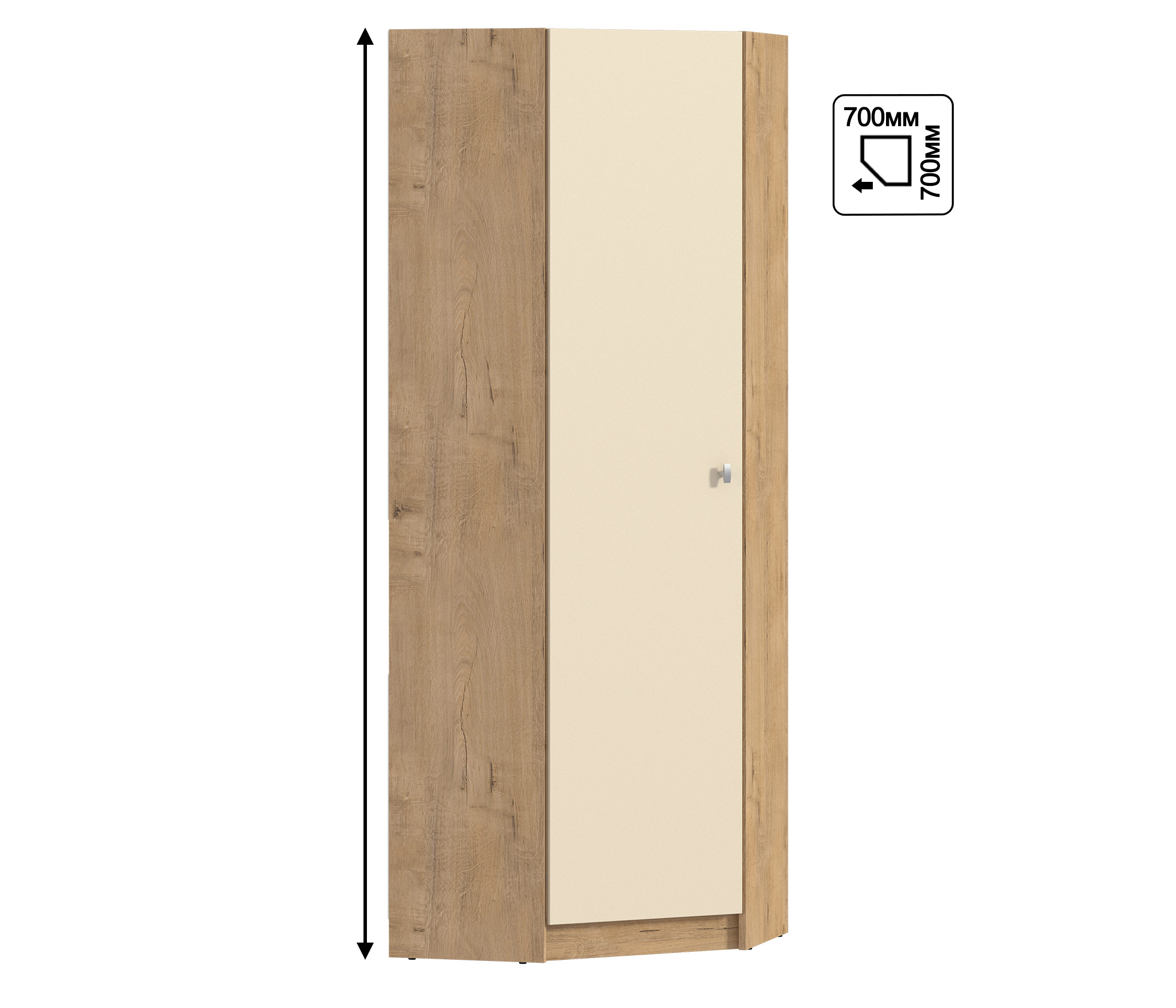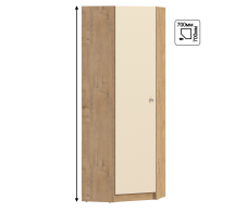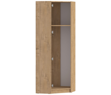 Выполнен шкаф из современного и прочного материала. Цвет отделки корпуса – «Дуб Бунратти», фасад двери в цвете «Ваниль». Шкаф может быть дополнен элементами модульного гарнитура Сидней. Лаконичный дизайн, продуманная фурнитура, прочные крепёжные механизмы говорят о достойном качестве углового шкафа Сидней, который можно рассматривать как отдельный предмет интерьера, а можно стилизовать в гарнитур.