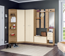 Купили прихожую,в неё вошёл угловой шкаф,угловой стеллаж,вешалка и тумба , думали шкаф и стеллаж будет выше,но и так не плохо,все влезло. Собирали сами все, в целом остались очень довольны!