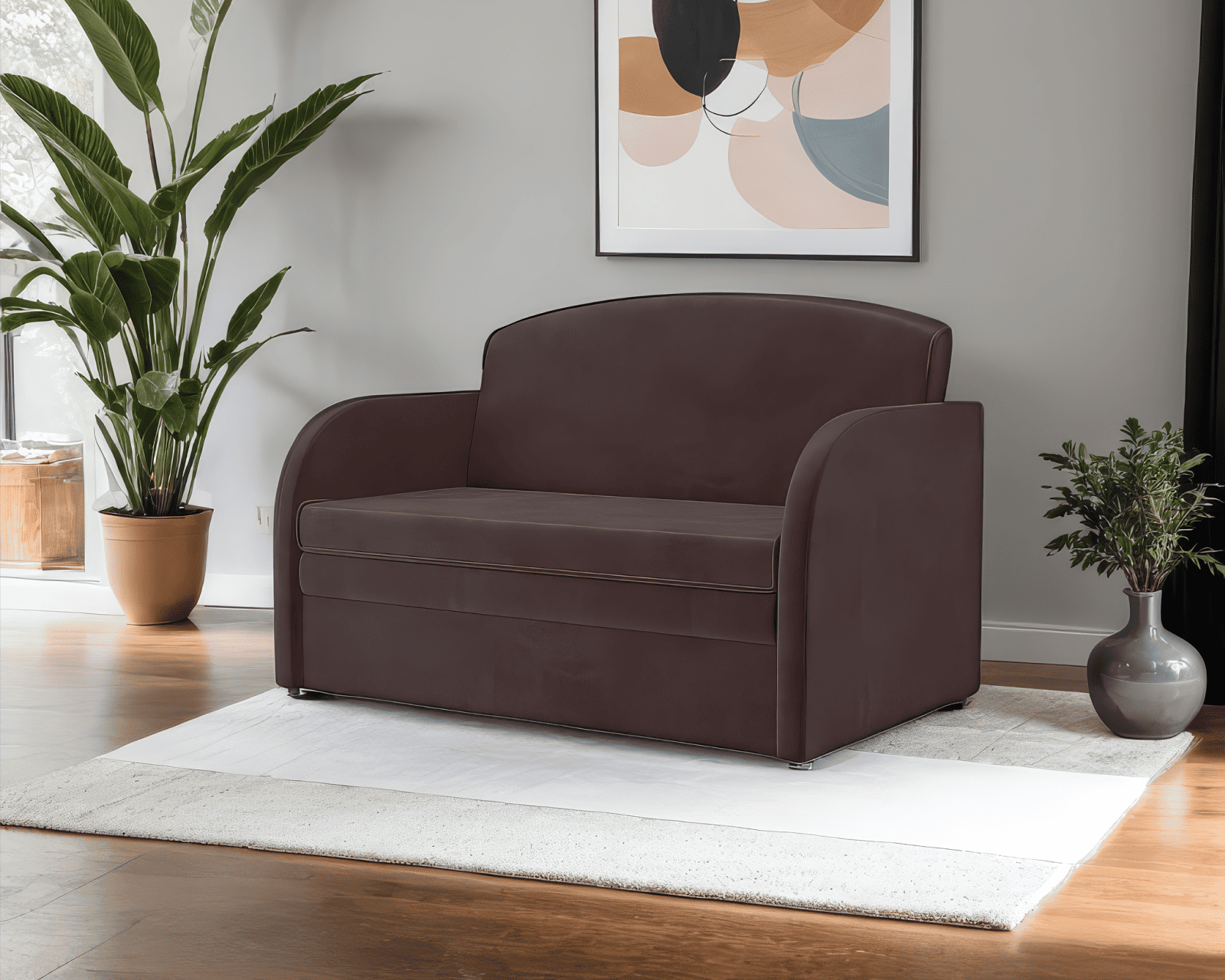Диван Выкатной «Малютка» - с закругленными подлокотниками отлично разместится в комнате с небольшой площадью и в большом зале.