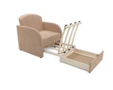 Модель представлена в более, чем пятнадцати цветах, что позволит подобрать кресло к любому интерьеру. Выкатная система трансформирует кресло в ровное спальное место, а также обеспечивает удобный и быстрый доступ к бельевому ящику, в который можно убрать постельное белье и подушку или любые другие вещи и предметы.