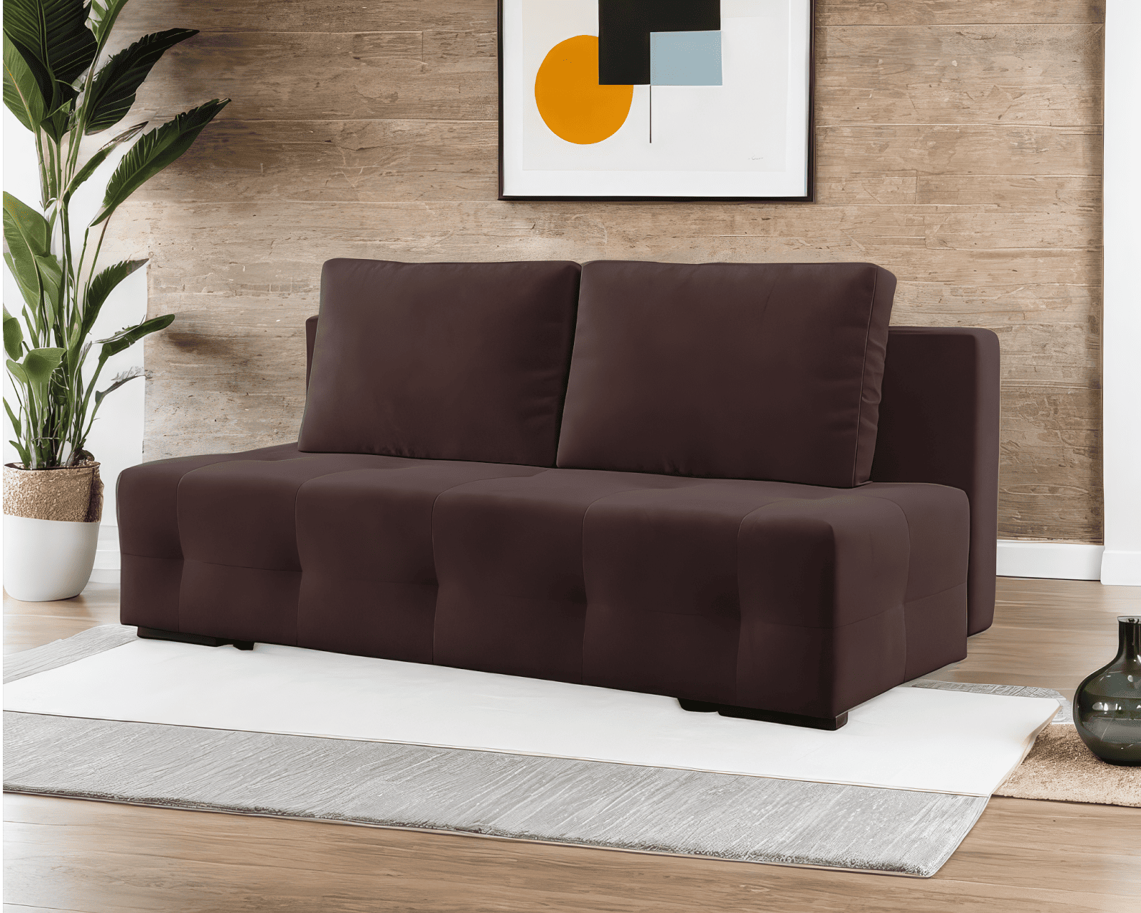 Модель отличается компактностью в сложенном состоянии, что позволяет сохранить свободное пространство в комнате. Разложенный диван предлагает полноценное спальное место размером 150х198 см.