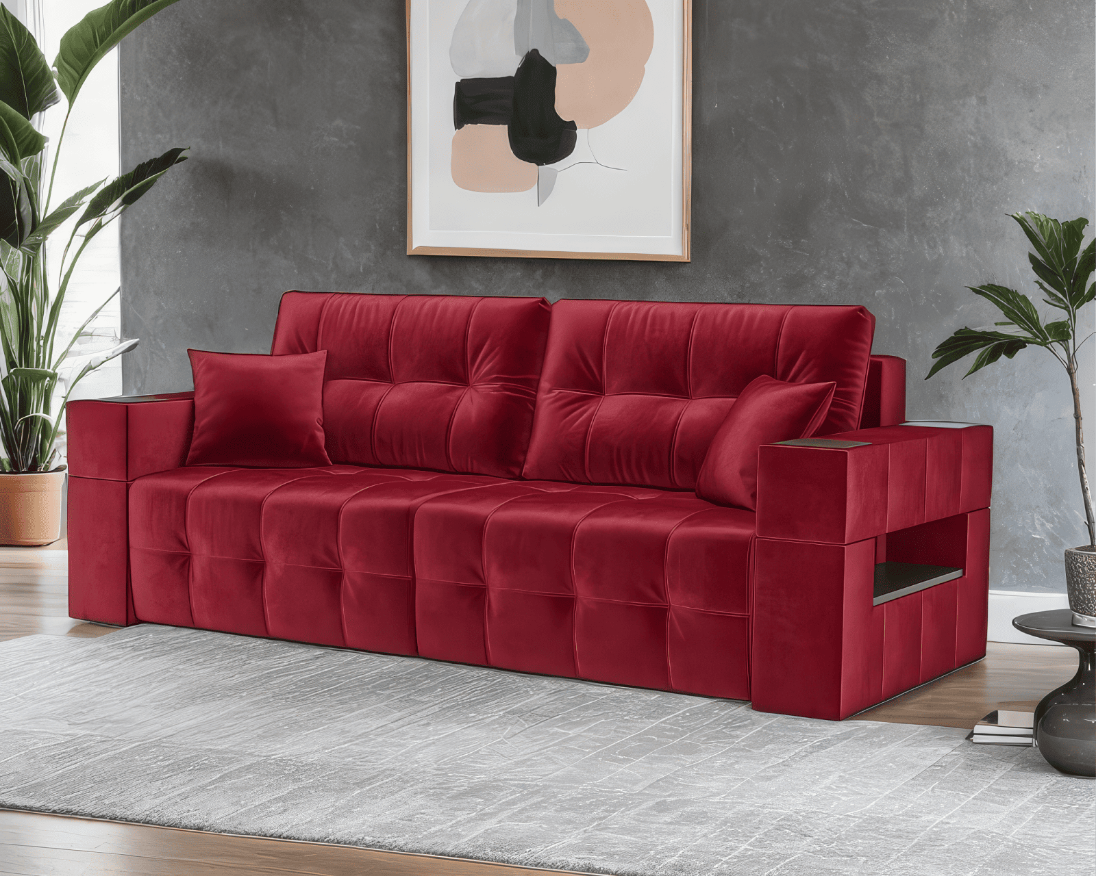 Диван прямой еврокнижка Венеция (Бархат) (Красный) Код I0000385336