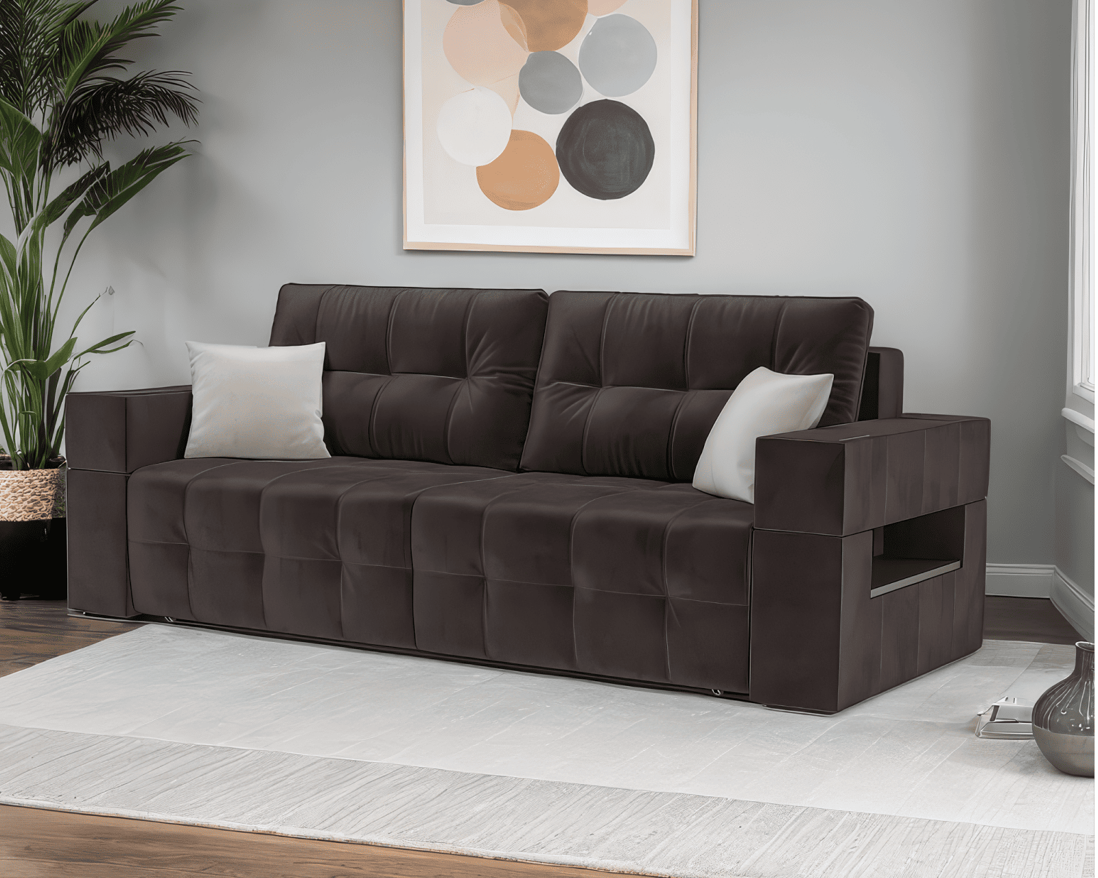 Габариты размером 245х102х84 см отлично подойдут для большой семьи, легко раскладывается, обеспечивая спальное место 150х198х45 см