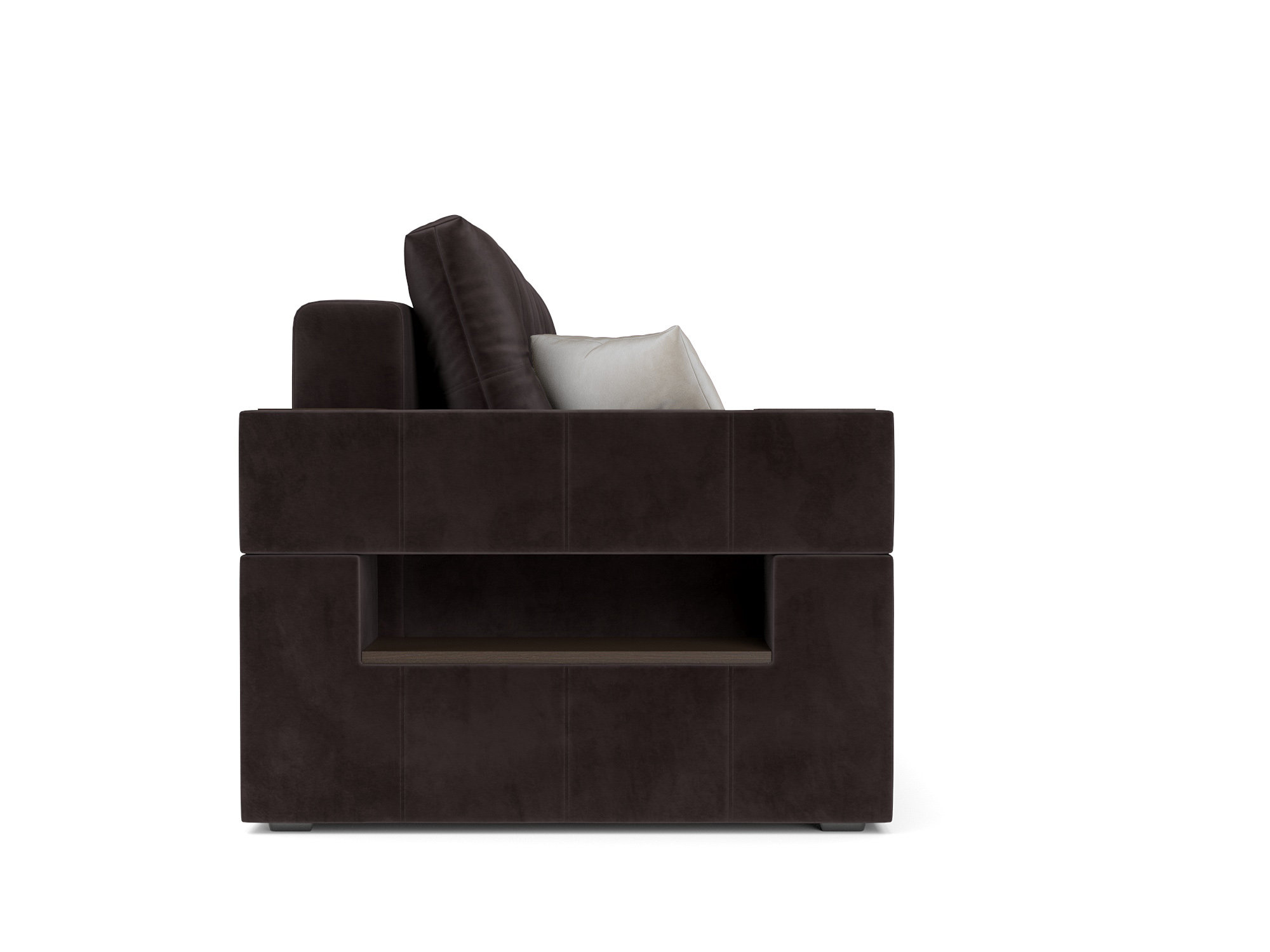 Встроенные в подлокотники ниши удобно использовать как место для расположения книг или небольших элементов декора. Глубокая посадка фиксируется приспинными подушками, поддерживающими правильное положение спины и шеи в положении сидя.