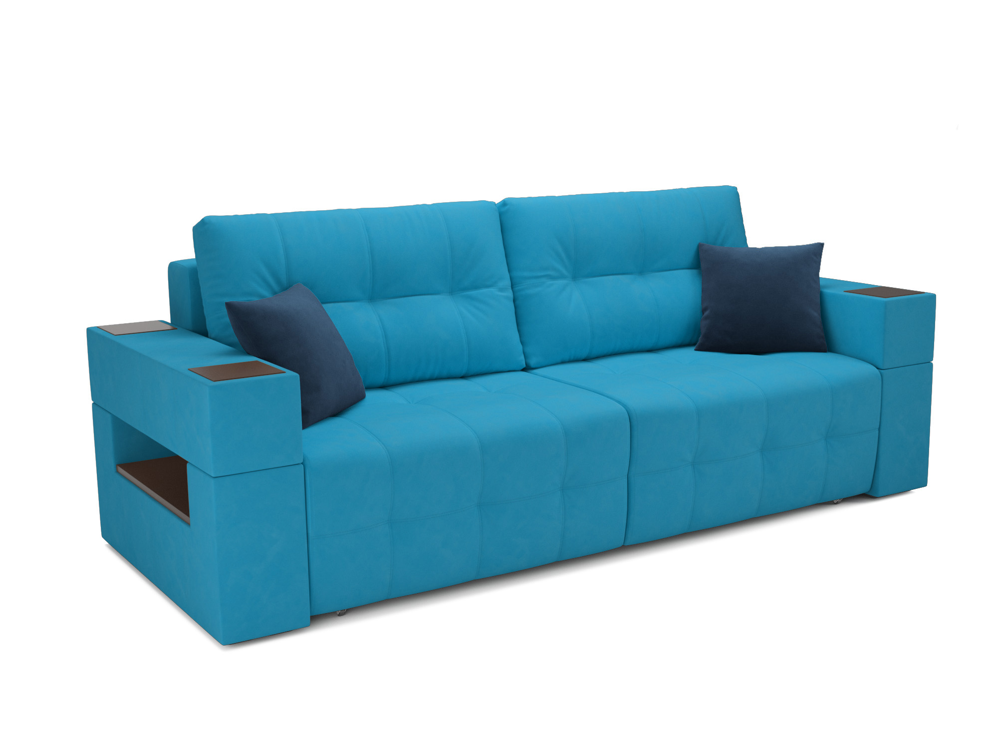 Встроенные в подлокотники ниши удобно использовать как место для расположения книг или небольших элементов декора. Глубокая посадка фиксируется приспинными подушками, поддерживающими правильное положение спины и шеи в положении сидя.