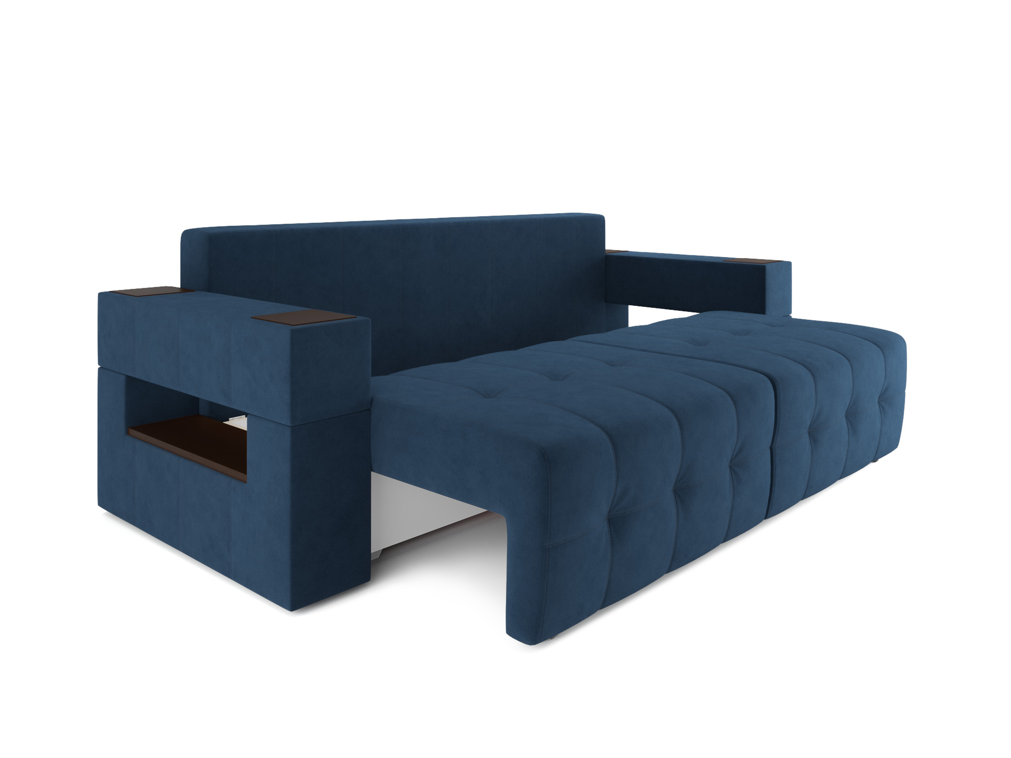 Встроенные в подлокотники ниши удобно использовать как место для расположения книг или небольших элементов декора. Глубокая посадка фиксируется приспинными подушками, поддерживающими правильное положение спины и шеи в положении сидя.