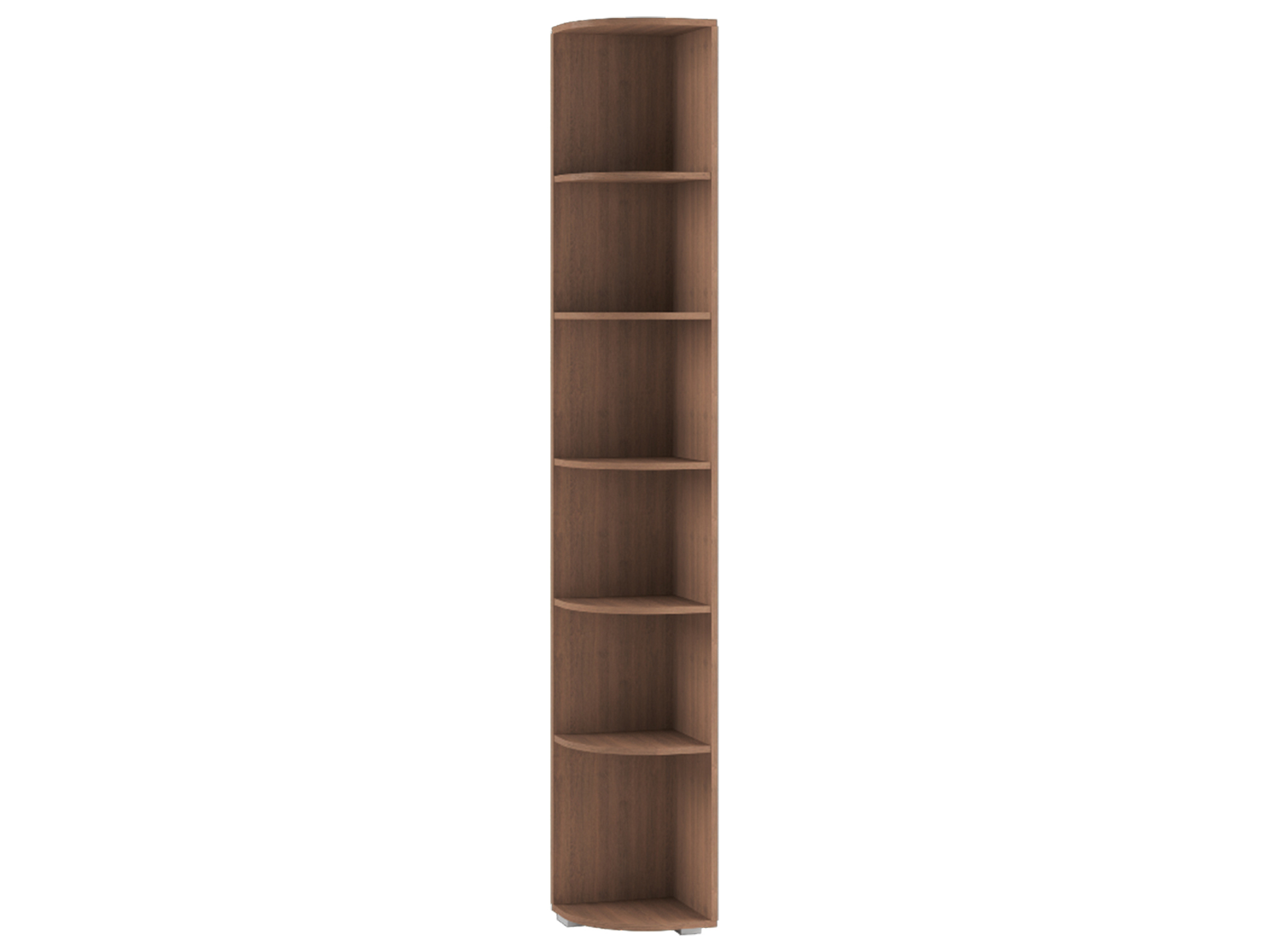 Стеллаж с открытыми закругленными полками для мелочей. Украшает боковину шкафа, предоставляя дополнительное место для хранения вещей.