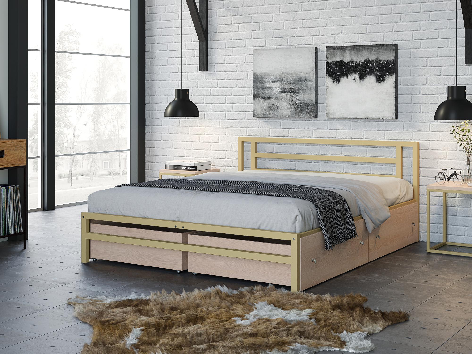 Отзывы о Столплит Двуспальная металлическая кровать Титан с ящиками дуб Слоновая кость