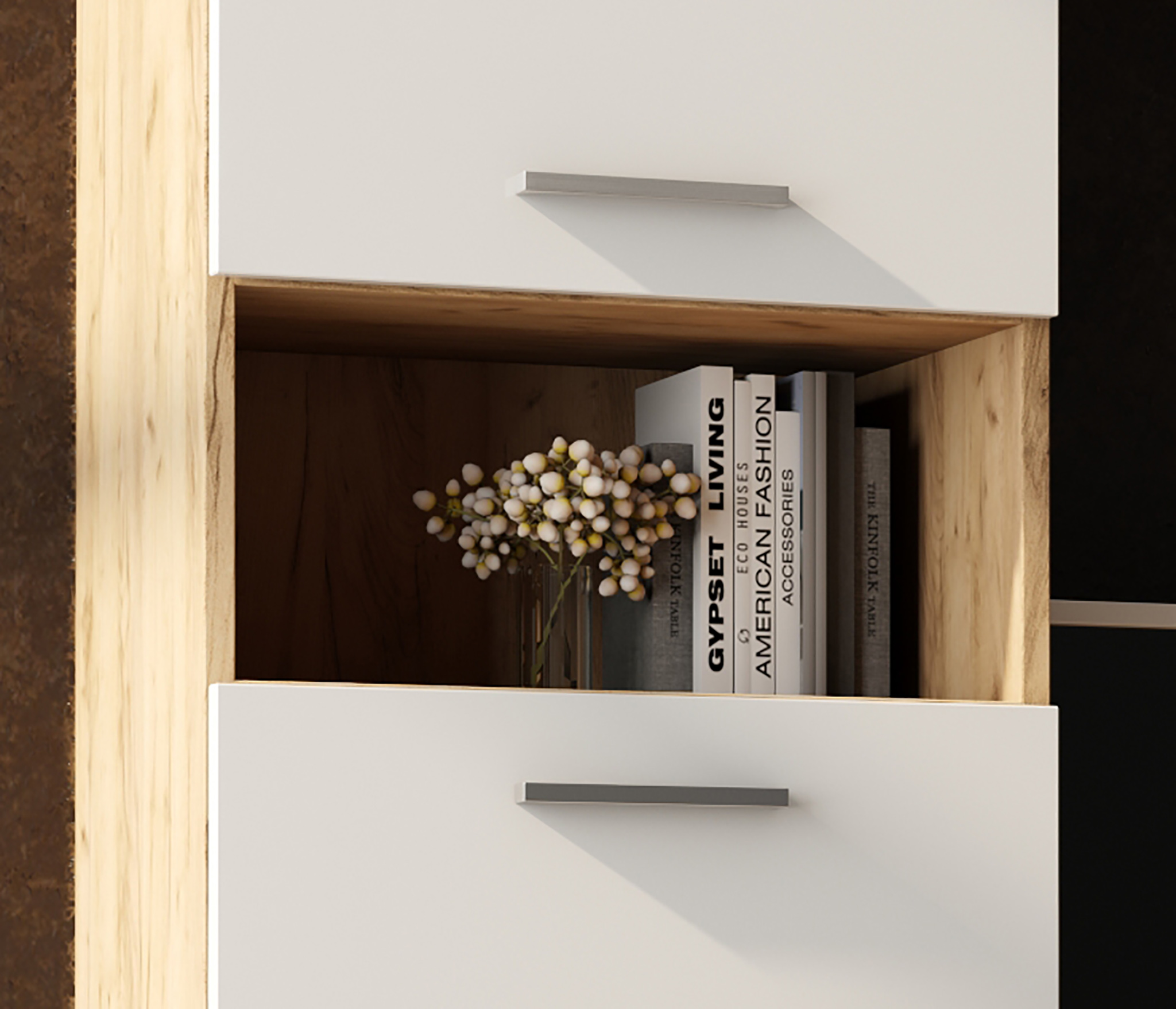 Стенка очень понравилась, цвет дуба необычный, собирали часов 5. Единственные минусы - есть несколько царапин на шпоне, отверстия под ручки на дверцах были слишком широко сделаны, потому пришлось ручки сделать неплотно. Белые фасады были в пленке, стекло аккуратно запаковано - так что в целом очень довольны. Стеллаж со стеклом открывается одним нажатием, чему мы были приятно удивлены)