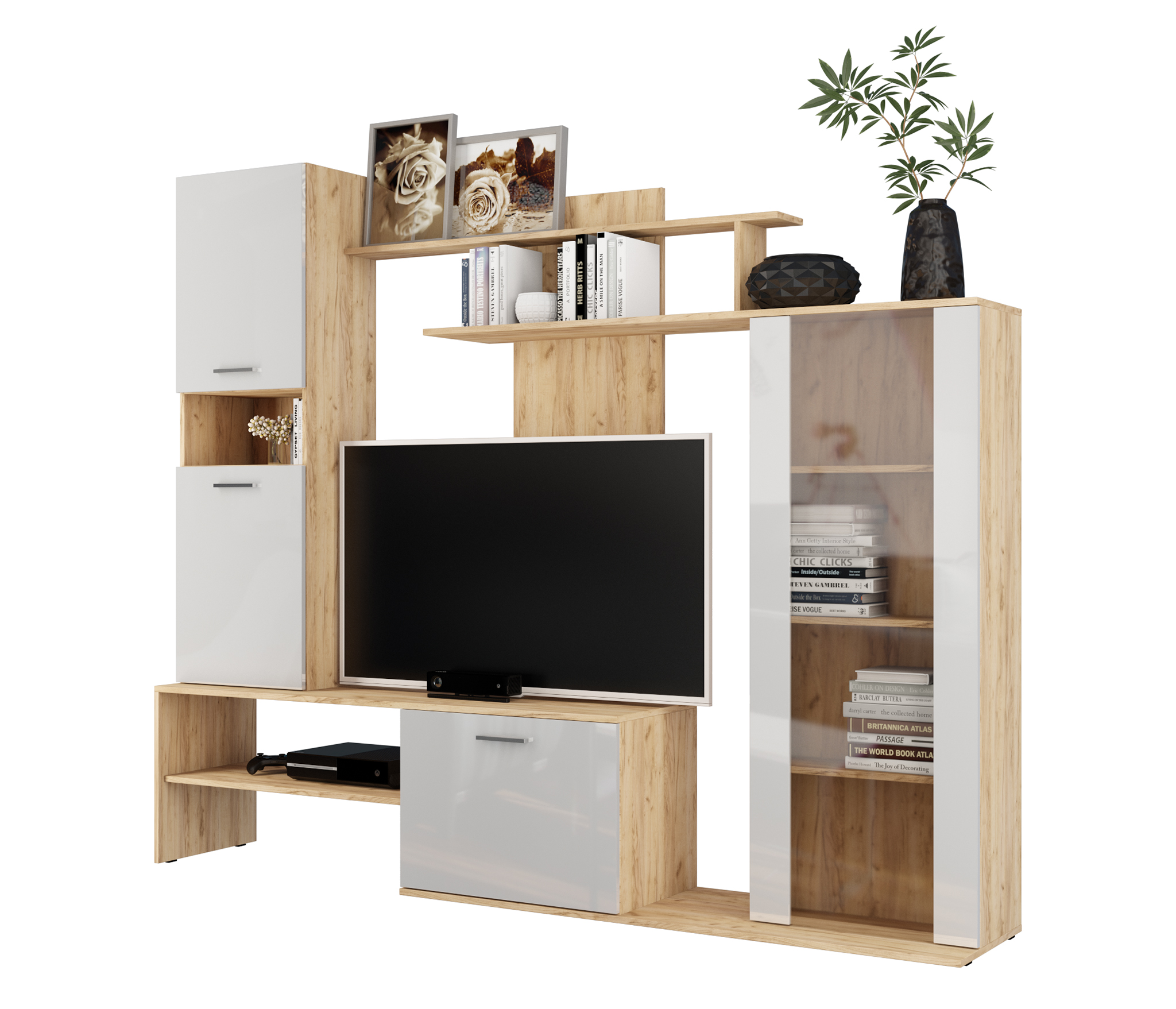 С полками, С ТВ тумбой , Стекло, глянцевые фасады