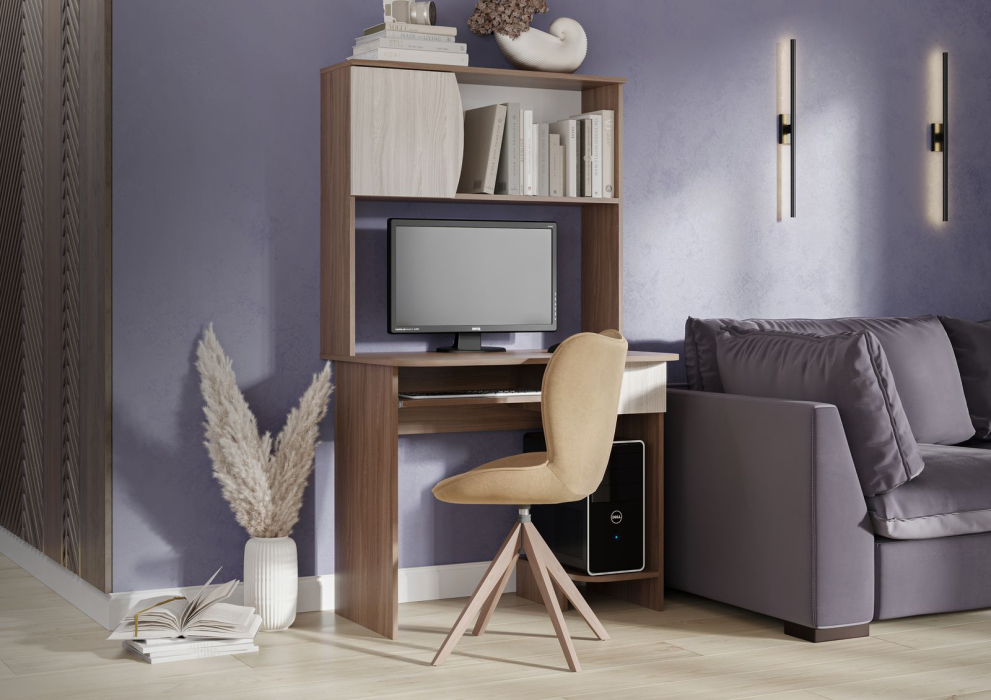 Стол компьютерный №2 позволит организовать удобное и компактное рабочее пространство. В комплектацию стола входят надстройка с открытой и закрытой секциями, выдижной ящик, выкатная полка, а так же подставка под системный блок. Направляющие: роликовые.