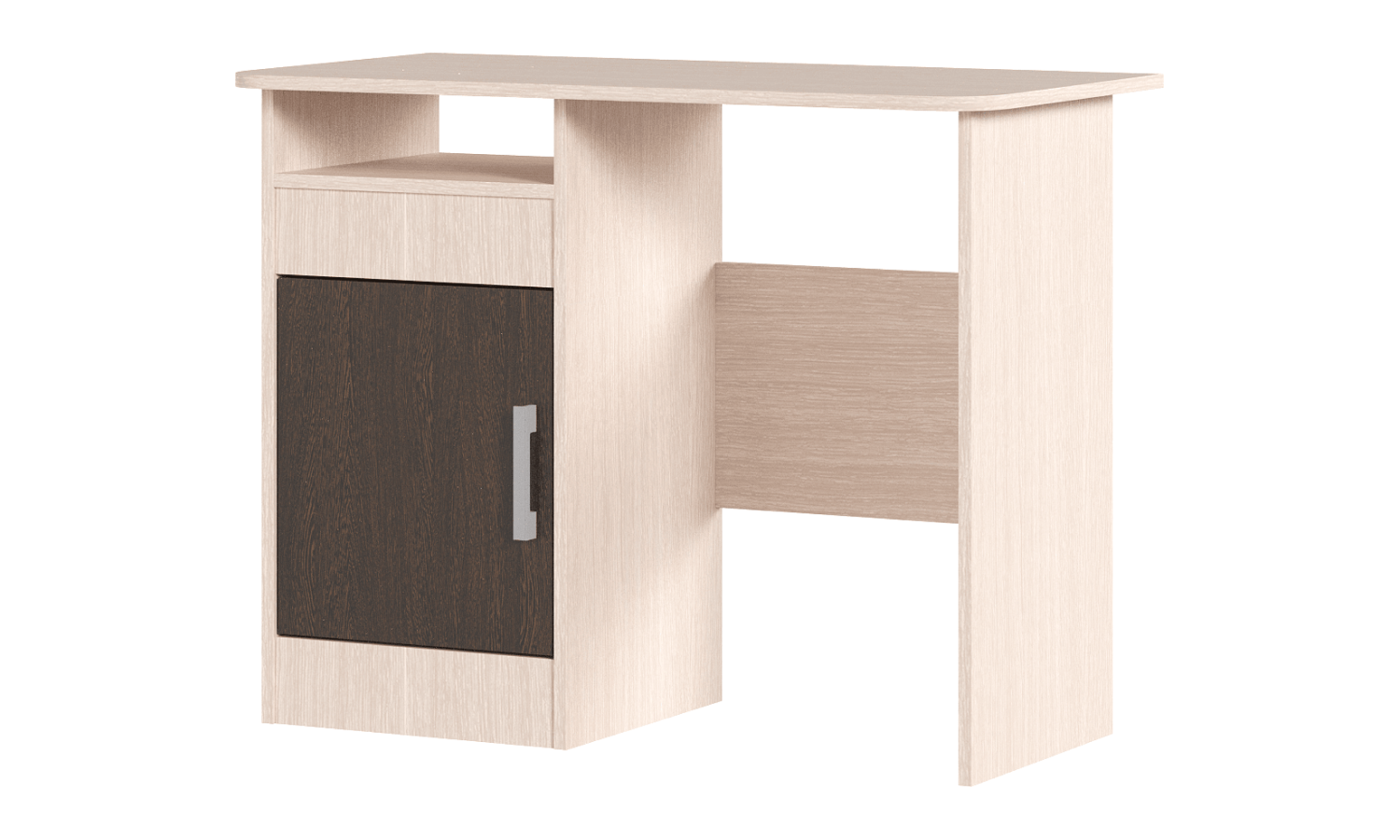 Стол компьютерный №4 прекрасно сочетает в себе компактность и эргономичность, благодаря чему стол поможет решить проблему с организацией рабочего места даже в очень ограниченном пространстве. В столе расположена открытая ниша, а так же закрытая секция с полкой. Материал ручек: Пластмасса.