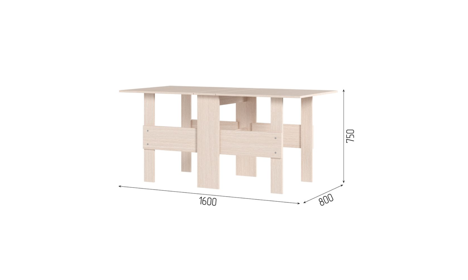 Стол-книжка "Стандарт" является эргономичной и лаконичной моделью. В сложенном виде ширина стола составляет 230 мм, что позваляет хранить его в очень ограниченном пространстве. В разложенном виде, стол превращается в полноценную обеденную зону, готовую принять большое количество гостей. Размер стола в разложенном виде: 1600*750*800 мм.