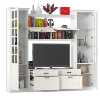 Набор мебели 1 Ливерпуль традиционная обстановка семейного гнезда, где в кругу родных приятно отдохнуть и раствориться в любви. Компактный набор, состоящий из тумбы, шкафа навесного, двух шкафов-пеналов с карнизами и полки - классика, когда всё есть и ничего лишнего. Тумба Ливерпуль обладает универсальной функциональностью - это и подставка для телевизора, и закрытая система хранения. Широкая тумба Ливерпуль имеет четыре выдвижных ящика на шариковые направляющих, верхние ящики - менее высокие. Элегантный шкаф навесной Ливерпуль оборудован двумя закрытыми отделениями без полок за откидными фасадами. Шкаф навесной Ливерпуль ценный особенной практичностью - удобным доступом к вещам и экономией полезной площади. Изящный, распашной шкаф-витрина, с двумя стеклополками и двумя полки из ДСП, полностью готов отвечать за сервировку трапезы. Витринная часть шкафа-витрины Ливерпуль презентабельно разместит праздничную посуду, закрытая - припрячет столовый текстиль. В крышке шкафа-витрины Ливерпуль предусмотрен спот врезной - для акцентной подсветки фамильных сервизов и живописного декора. Комплект карнизов 500 - беспроигрышный дизайнерский ход! В наборе мебели 1 гостиной Ливерпуль два комплекта карнизов 500. Элегантный комплект из трёх карнизов (лицевой и два боковых) довершит эстетический образ шкафов-витрин гостиной Ливерпуль. Карнизы крепятся к верхнему горизонту соседних шкафов-витрин, для повышения их «статуса» на мебельном Олимпе. Стильная, открытая полка Ливерпуль используется составе в гарнитура в качестве оригинального мостика между двумя шкафами-витринами. Дизайнерское назначение полки Ливерпуль - внесение в ансамбль визуальной лёгкости, живописных акцентов размещённого декора. Крепится полка Ливерпуль к боковинам соседних шкафов-витрин, крепление к стене не предусмотрено. Очаровательный набор 1 для гостиной Ливерпуль выделяет удобную и вместительную нишу размером 140х49х90 см. для телевизора. Набор мебели 1 Ливерпуль для тех, кто устал от минимализма и предпочитает обстановку в духе старины, с оттенком деревенского стиля. С самобытной мебелью Ливерпуль в Вашем доме поселится эстетика прошлого - незабываемый колорит уютного и практичного кантри. Нежность пастели мебели, винтажные нотки «состаренного дерева», эксклюзивные ручки - тайна прелести дизайна набора Ливерпуль. Сочетание в отделке мебели цвета «ясень» с выразительным рисунком темных прожилок, имитирует объёмность и фактуру крашеного массива. Ливерпуль Набор мебели 1 - это просто, но с налётом шика и роскоши, функционально, но очень стильно, практично, но долговечно!