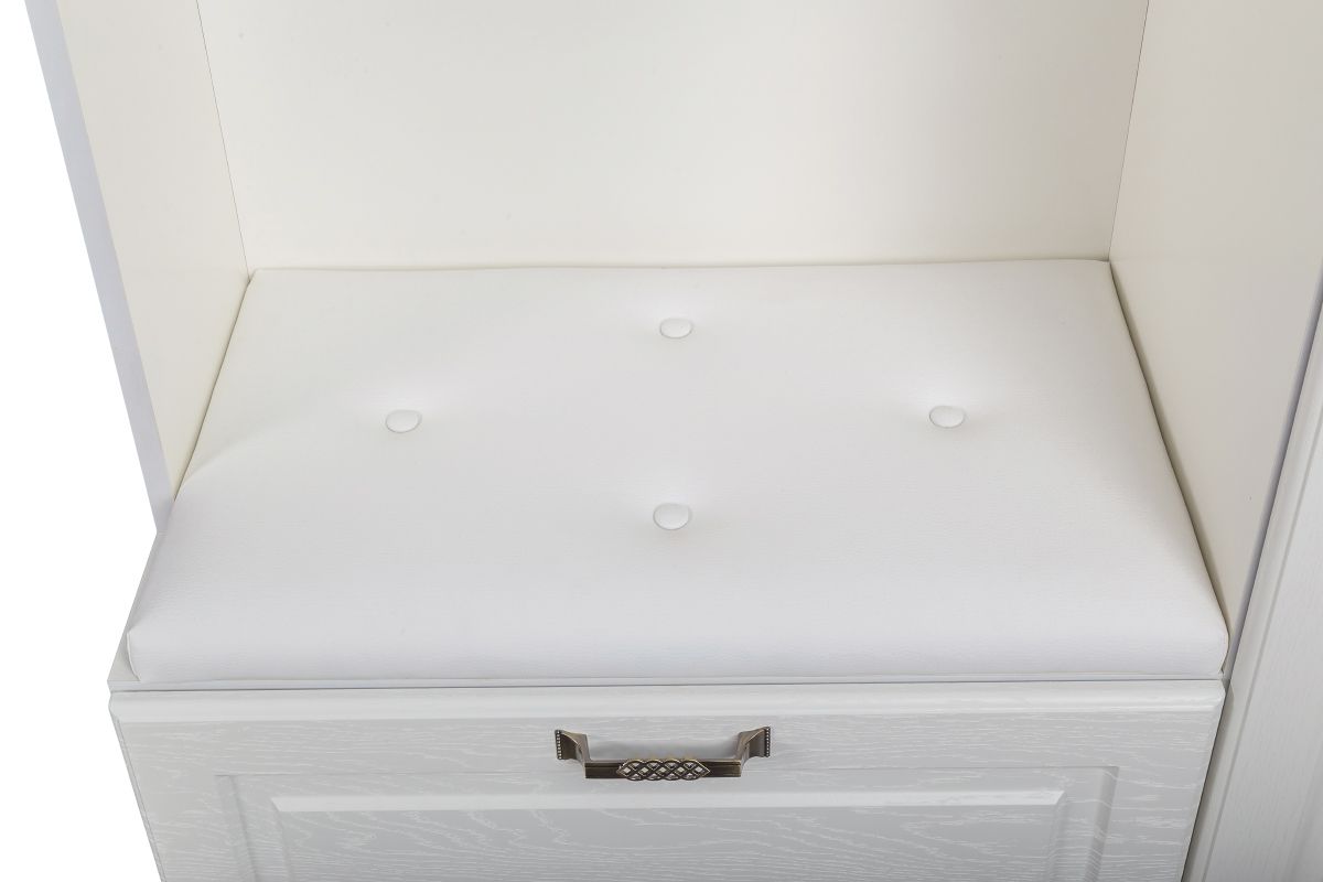 Нарядная, компактная и удобная прихожая Ливерпуль № 1 поселит незабываемый колорит уютного и практичного стиля кантри в Вашем доме. Прихожая Ливерпуль № 1 включающая шкаф многоцелевого назначения с карнизом и пуф с высоким зеркалом - минимум места и максимум услуг! Элегантный шкаф 13.21 удобно комбинирует открытую вешалку с закрытой антресолью и выдвижным ящиком, с распашным шкафом-пеналом. Открытая вешалка с пятью пластиковыми крючками разместит сезонную одежду и аксессуары, антресоль с откидным фасадом - головные уборы. Выдвижной ящик шкафа многоцелевого назначения 13.21 послужит Вам обувницей и банкеткой - крышка ящика облагорожена мягким сидением. Распашной шкаф-пенал оборудован четырьмя полками для вещей. Шкаф многоцелевого назначения 13.21 собирается на любую сторону. Элегантный комплект из трёх карнизов (лицевой и два боковых) довершает эстетический образ многоцелевого шкафа 13.21 Ливерпуль. Карнизы крепятся к верхнему горизонту шкафа многоцелевого 13.21, существенно повышая его «статус» на мебельном Олимпе. Роскошный пуфик с уютной крышкой с мягкой обивкой из белоснежной искусственной кожи, так и манит присесть отдохнуть! Эффектная обивка подъёмной крышки украшена «каретной» стяжкой, под крышкой - вместительное отделение для вещей. Небольшой вес пуфика позволяет с лёгкостью переместить пуф, переобуться, где Вам удобно, и возвратить на его «интерьерное» место! Зеркало навесное высокое Ливерпуль 03.242 - продемонстрирует Вашу элегантность, добавит эффектности и море света в интерьер! Рама зеркала Ливерпуль 03.242 украшена модной глубокой фрезеровкой, края зеркала красиво обработаны фацетом. Универсальная сборка прихожей Ливерпуль № 1 - ещё один шаг к комфорту и уюту даже в крошечной комнате. Нежность пастели мебели, винтажные нотки «состаренного дерева», эксклюзивные ручки - тайна прелести дизайна прихожей Ливерпуль. Сочетание в отделке мебели цвета «ясень» с выразительным рисунком темных прожилок, имитирует объёмность и фактуру крашеного массива. Прихожая Ливерпуль № 1 - это просто, но с налётом шика и роскоши, функционально, но очень стильно, практично, но долговечно!