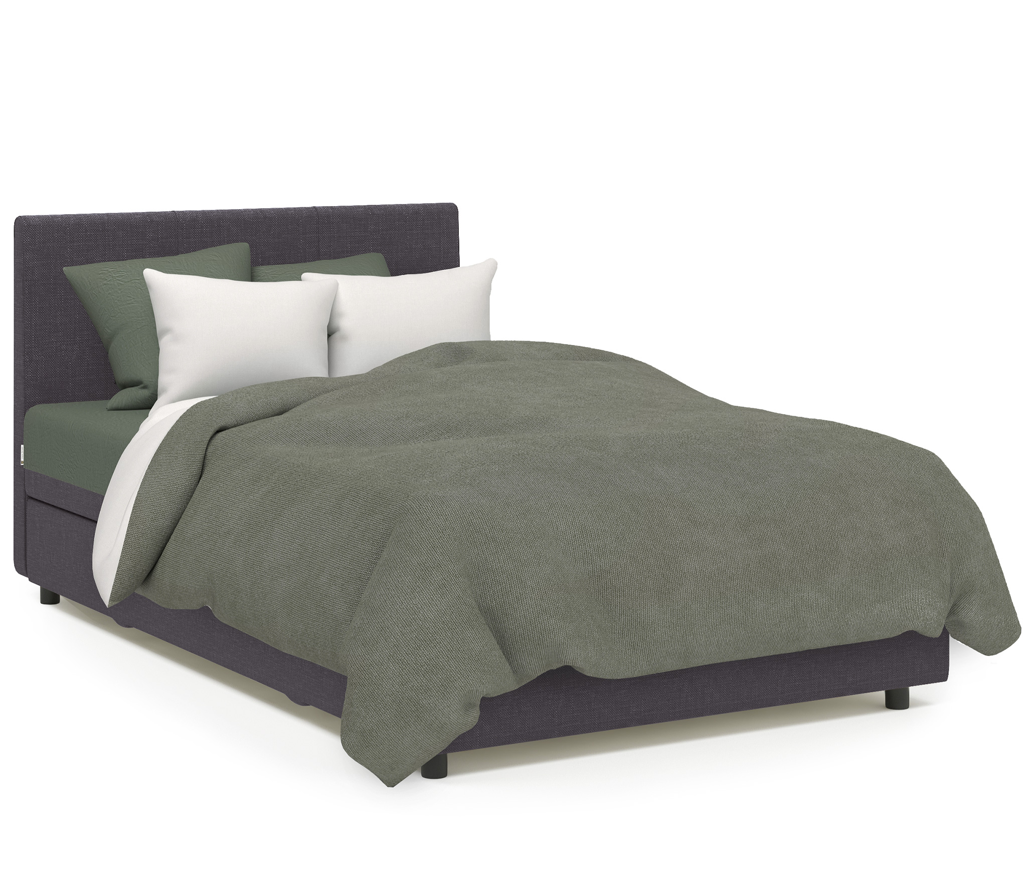 Наполнитель: пенополиуретан (ППУ), пружиный блок, войлок, обивочная ткань. Kомплектация: вместительный ящик для белья.