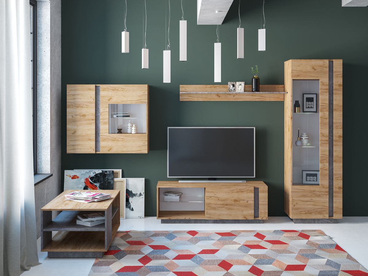 Арчи - коллекция стильной и удобной мебели для современной гостиной. Дизайн мебели Арчи сочетает в себе прямые геометрические формы, высокий функционал, интересное цветовое и фактурное решение. Ламинированная ДСП, из которой изготовлена мебель Арчи, имеет вид тёплого дерева и холодного камня. Множество стеклянных элементов, акцентированных светодиодной подсветкой, визуально соединяют камень и дерево в единую композицию. Гостиная Арчи выглядит ярко и сдержанно одновременно, что весьма модно и актуально на нынешнем рынке мебели. Коллекция Арчи представлена восемью модулями - несколькими шкафами, тумбами, комодом, полочкой и журнальным столиком. Комбинация этих элементов по своему вкусу, позволяет создать красивый и удобный интерьер гостиной комнаты, согласно своим предпочтениям.