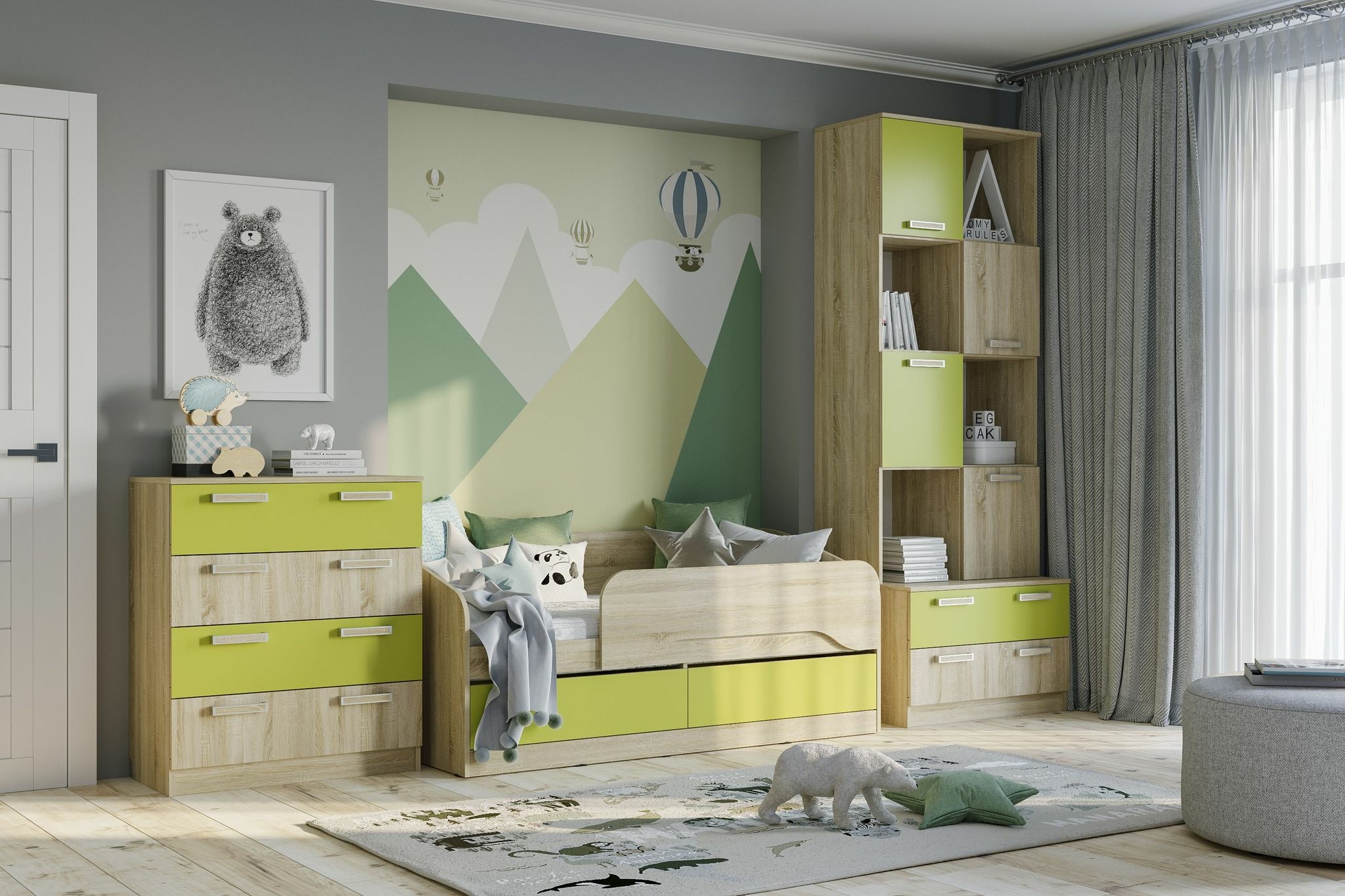 Детская кровать из серии Акварель выполнена из качественных материалов и имеет защитный борт.