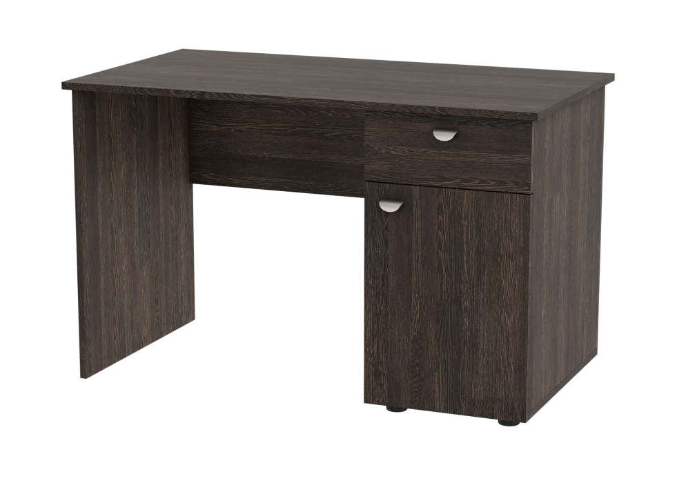 Стол оснащен одним выдвижным ящиком и закрытой тумбой с двумя полками. Производится из высокачественной ЛДСП. Стильный и прочный.