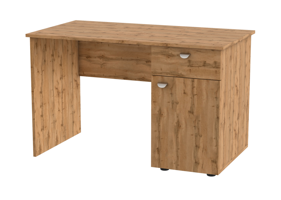 Стол оснащен одним выдвижным ящиком и закрытой тумбой с двумя полками. Производится из высокачественной ЛДСП. Стильный и прочный.
