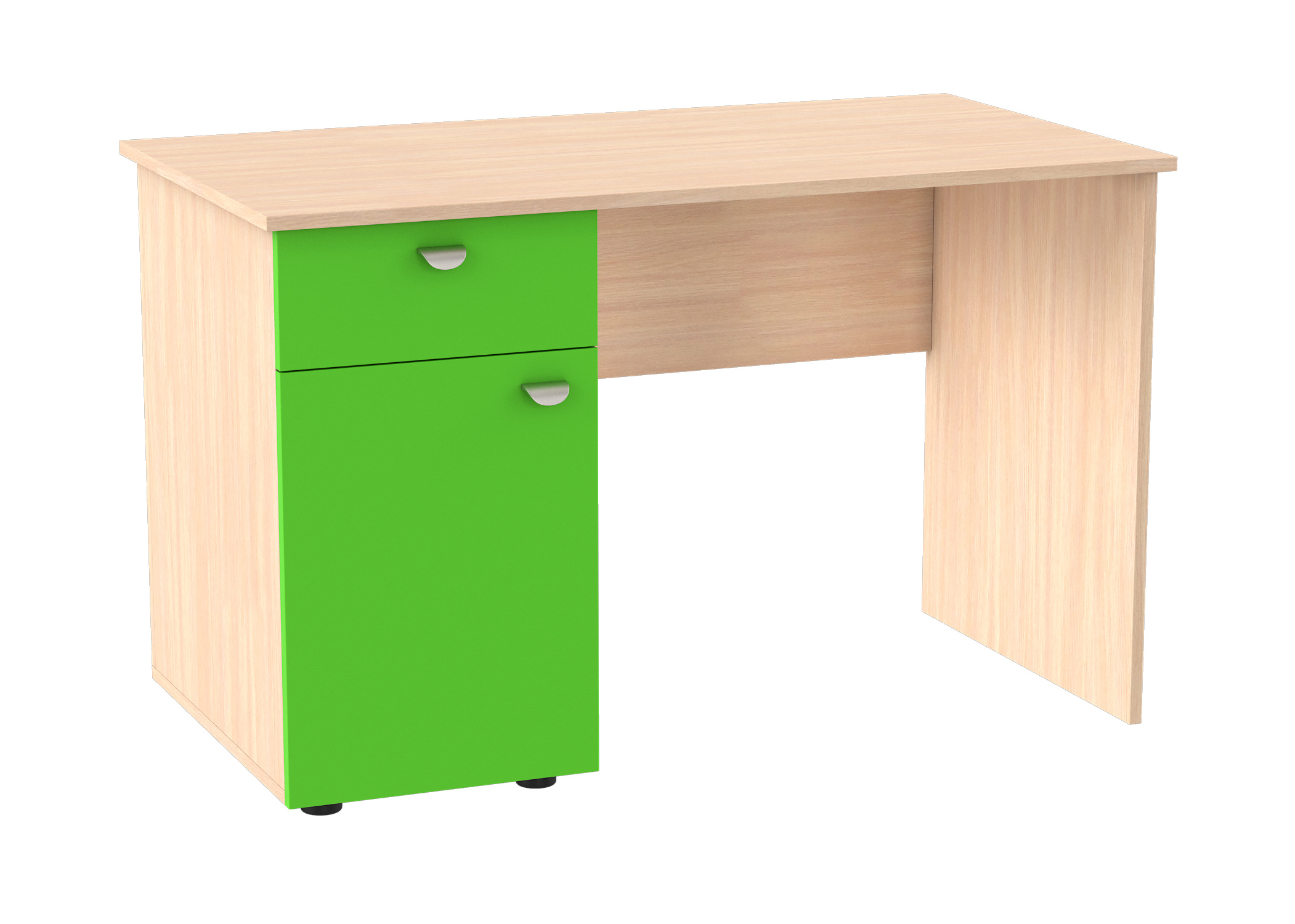 Стол оснащен одним выдвижным ящиком и закрытой тумбой с двумя полками. Производится из высокачественной ЛДСП. Стильный и прочный.