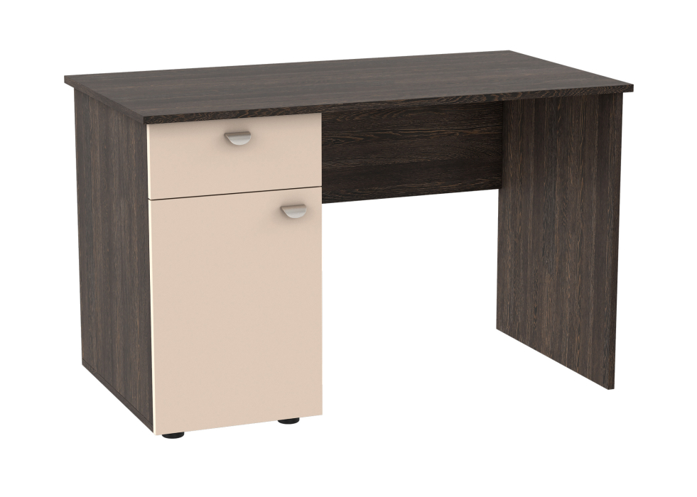 Стол оснащен одним выдвижным ящиком и закрытой тумбой с двумя полками. Производится из высокачественной ЛДСП. Стильный и прочный.