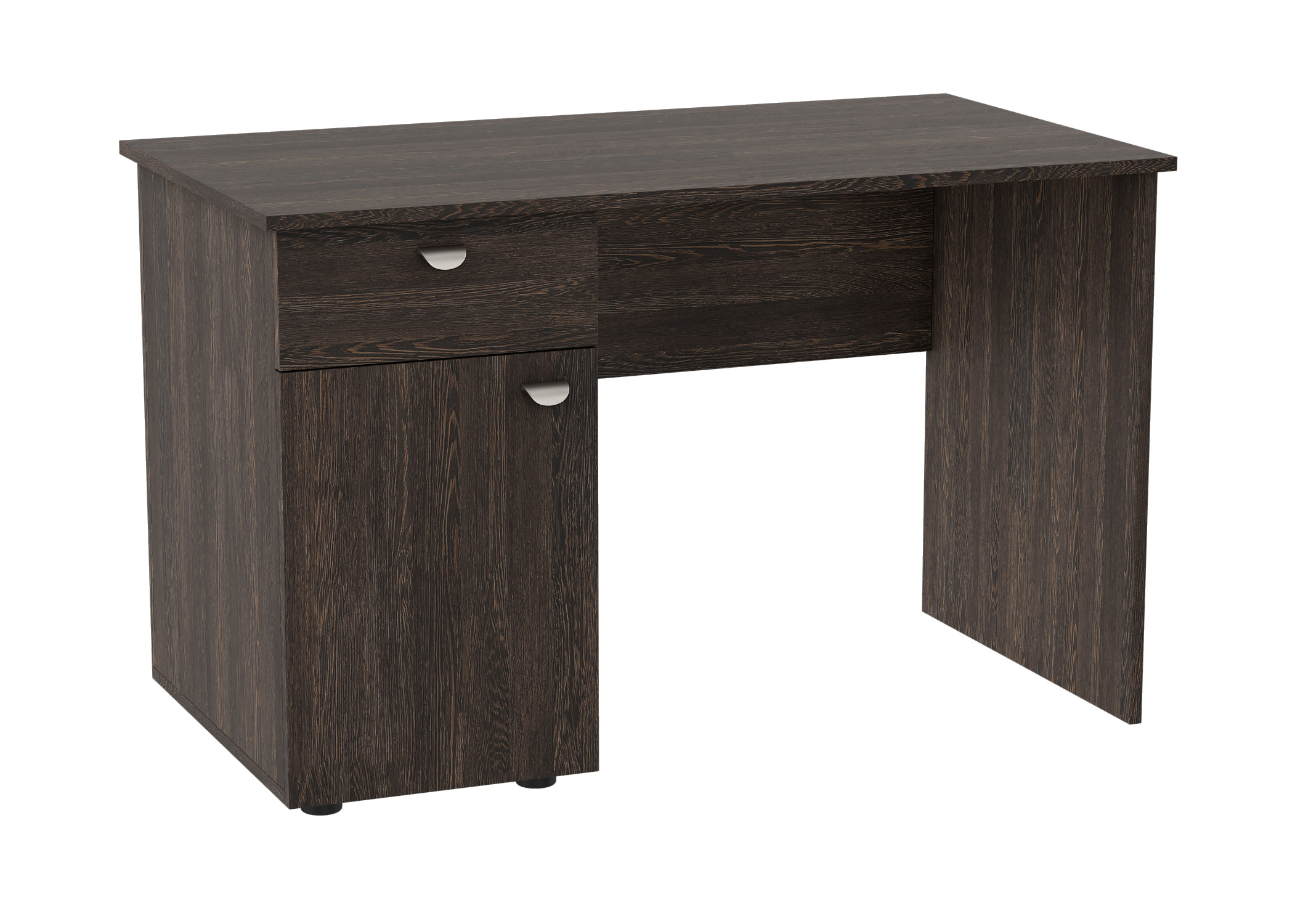 Стол оснащен одним выдвижным ящиком и закрытой тумбой с двумя полками. Производится из высокачественной ЛДСП. Стильный и прочный.