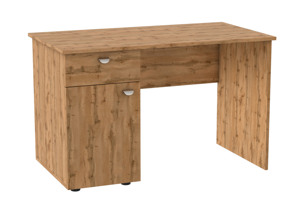 Стол оснащен одним выдвижным ящиком и закрытой тумбой с двумя полками. Производится из высокачественной ЛДСП. Стильный и прочный.