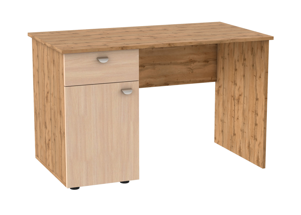 Стол оснащен одним выдвижным ящиком и закрытой тумбой с двумя полками. Производится из высокачественной ЛДСП. Стильный и прочный.