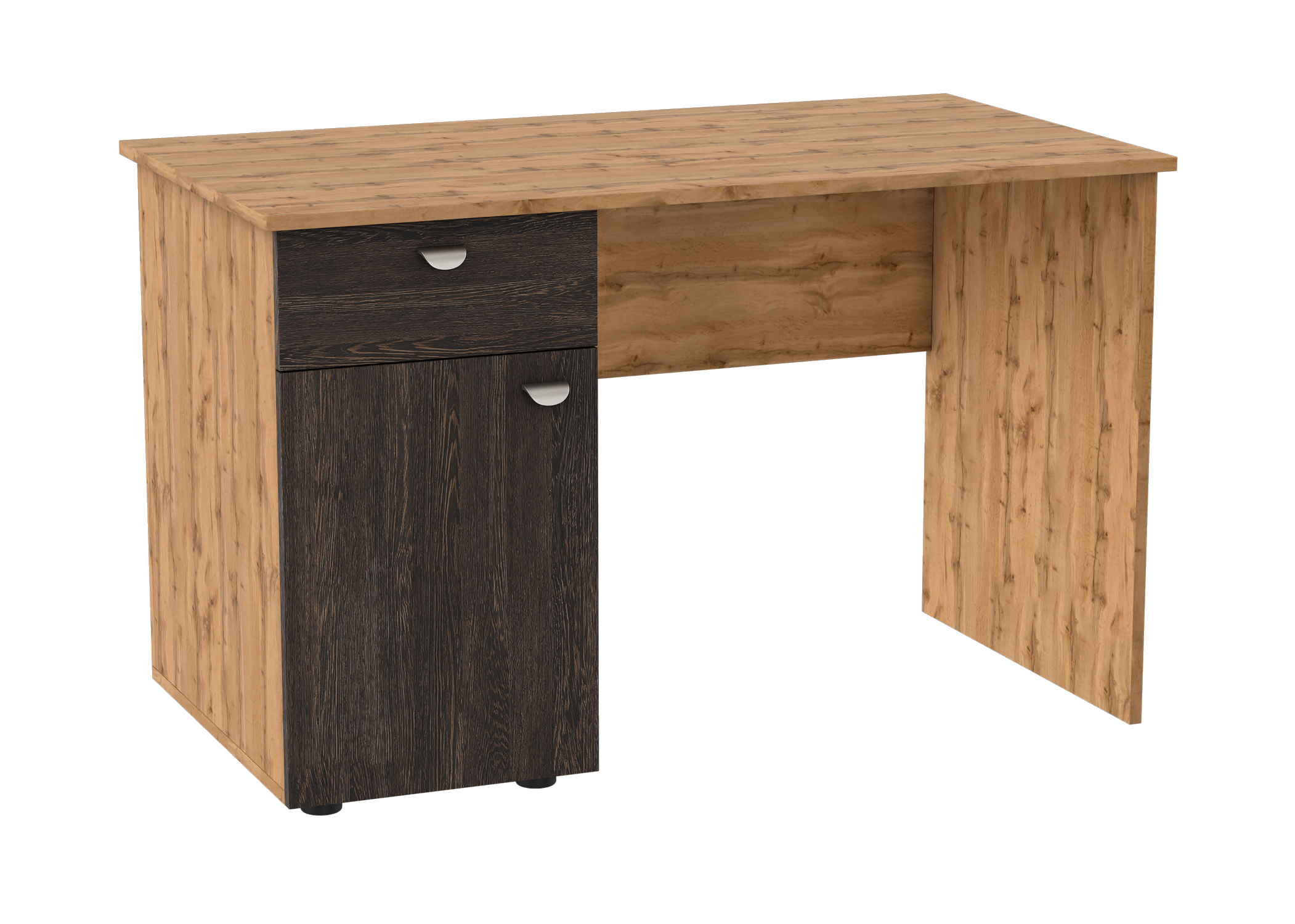 Стол оснащен одним выдвижным ящиком и закрытой тумбой с двумя полками. Производится из высокачественной ЛДСП. Стильный и прочный.