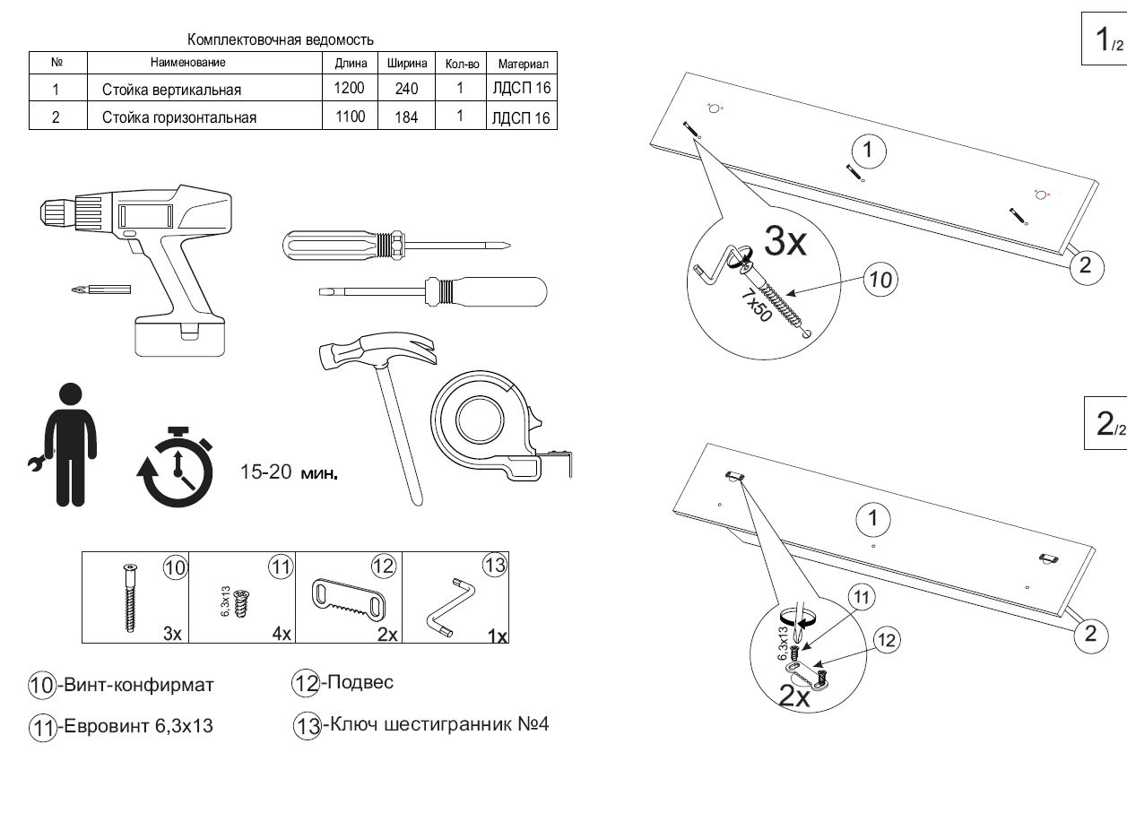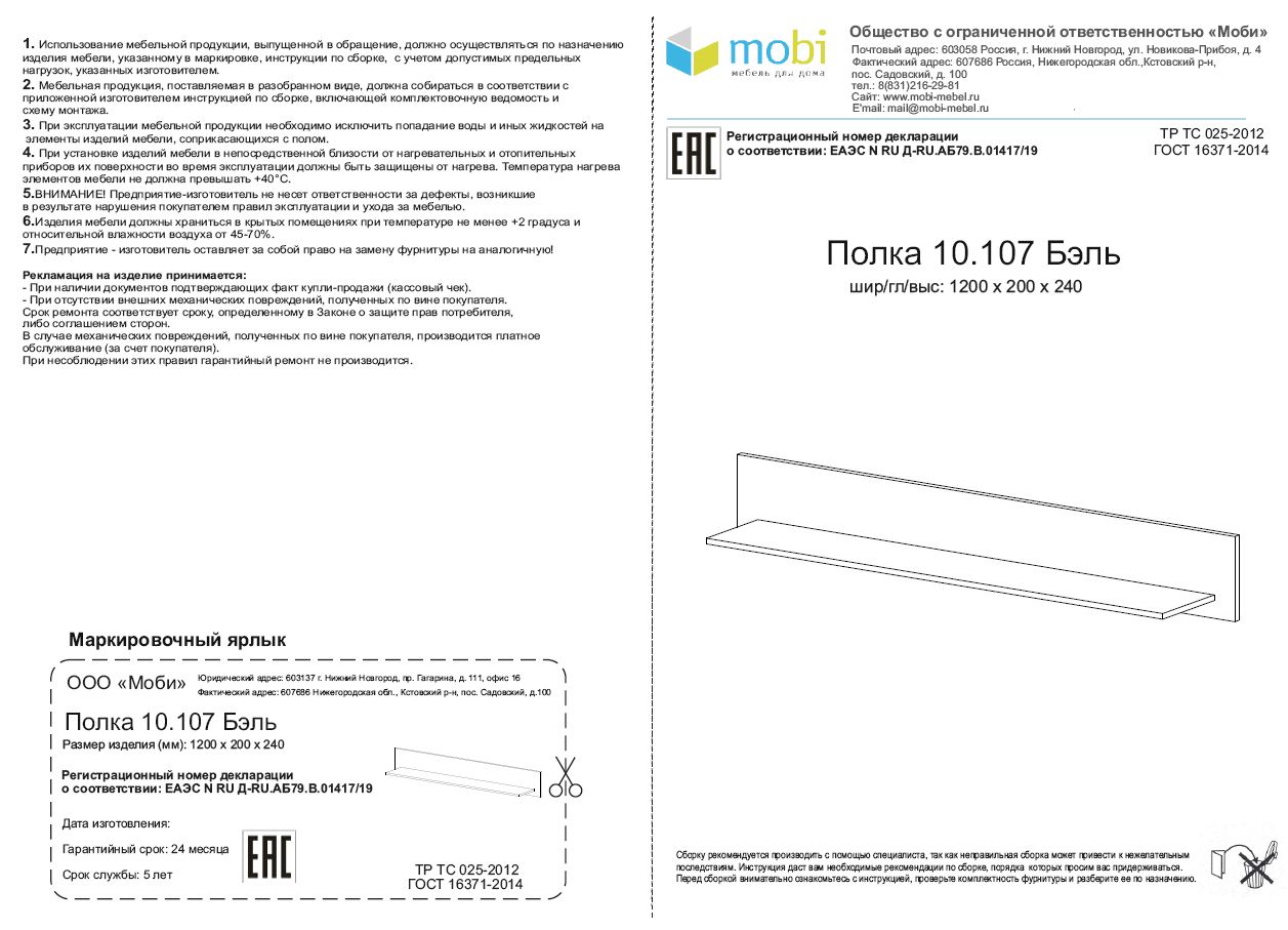Габариты полки (ШхГхВ): 120х20х24 см.