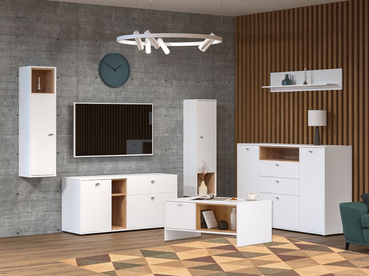 Декоративный стиль серии мебели Бэль таит нотки конструктивизма, позволяя реализовывать смелые идеи за счёт игры с пространством. Сочетание строгих, вертикальных и горизонтальных линий, и природная теплота элементов отделки, создают эффект визуальной динамики. Семь разноформатных модулей гостиной Бэль покоряют комфортностью и функциональностью, интригуют выразительным цветовым миксом. Шкаф навесной, пенал, две тумбы для аппаратуры, комод, полка и журнальный стол набора для гостиной Бэль смотрятся красиво и стильно. Белоснежная гостиная Бэль выглядит празднично, ассоциируется с чистотой, лёгкостью, свежестью и заряжает положительной энергетикой. Гостиная Бэль предлагает настоящие ценности - элегантное благородство дизайна, эргономику формы и превосходное качество материалов. Корпуса и фасады мебели Бэль выполнены из экологически чистой ламинированной ДСП 16 мм., лицевая фурнитура - ABS пластик, цвет сатин. Современная фурнитура, использованная в производстве гостиной Бэль, отличается высокой надёжностью и долговечностью. Распашные двери всех модулей гостиной Бэль на четырёхшарнирных петлях, выдвижные ящики-фолдинги на шариковых направляющих. Мебель гостиной Бэль поставляется в разобранном виде, с комплектом фурнитуры, упакованная в 4-х слойный гофрокартон.