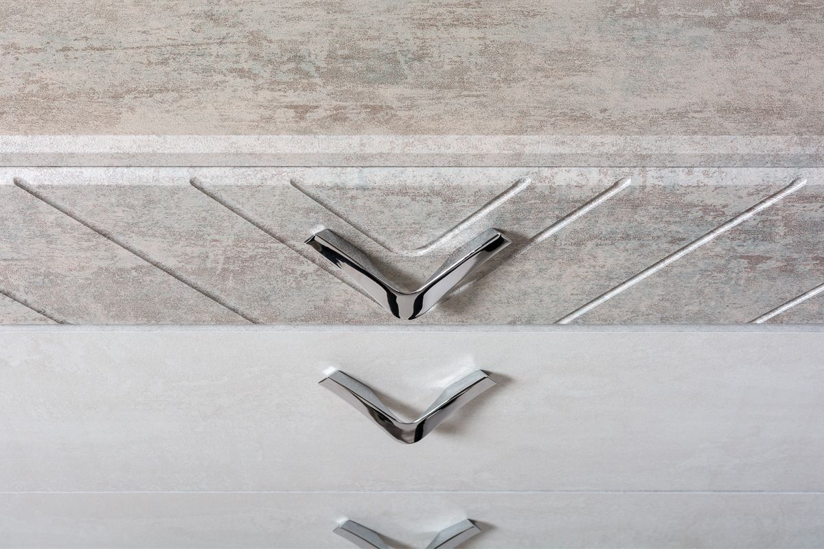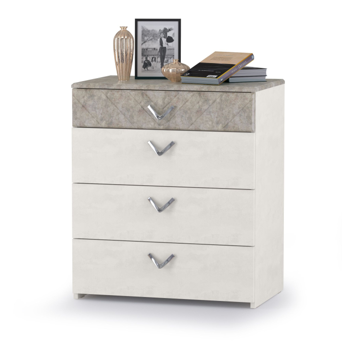 Комод Амели 13.106 шёлковый камень/бетон чикаго беж - традиция бережного хранения вещей. Компактный комод Амели 13.106 позволит аккуратно рассортировать бельё и одежды в четырёх удобных выдвижных ящиках. Фрезеровка на фасадах мебели, зеркалах выполнены в виде полосок и зигзагов. Коллекция мебели для спальни Амели поможет обустроить комфортное, стильное и статусное пространство для Вашей семьи.