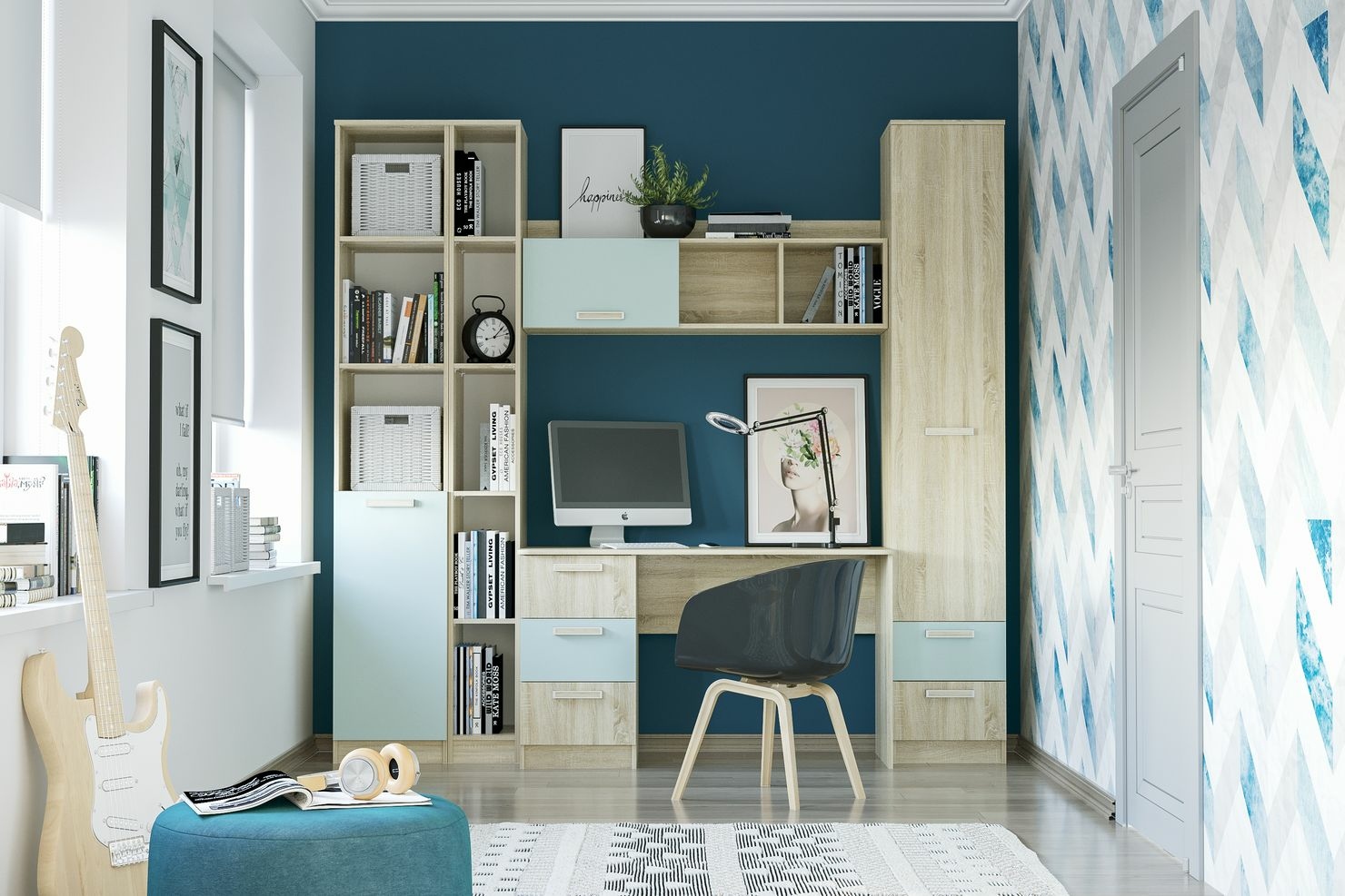 Акварель НМ 011.38-01 М1 Полка (Дуб молочный/Голубой)