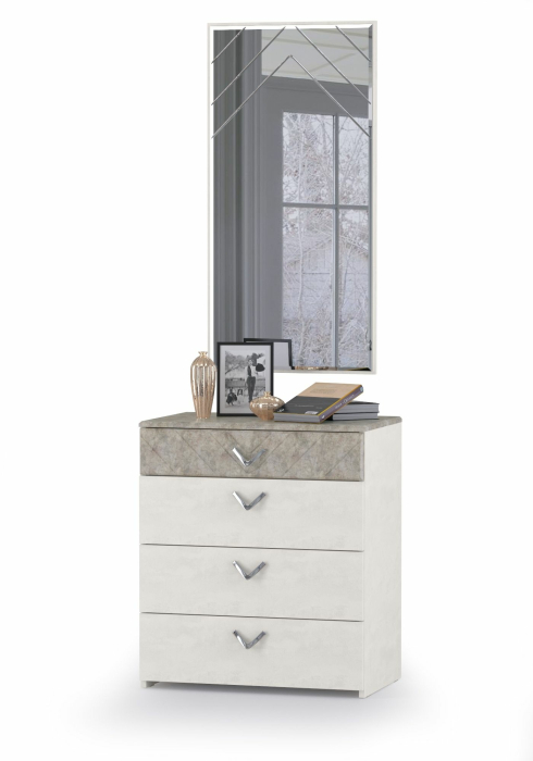 Комод четыре ящика с зеркалом Амели 13.106+03.240 шёлковый камень/бетон чикаго беж - лично для милых Дам, красавиц и хозяюшек!