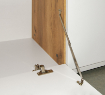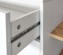 Распашные двери установлены на четырехшарнирные петли, выдвижные ящики - фолдинги на шариковых направляющих.