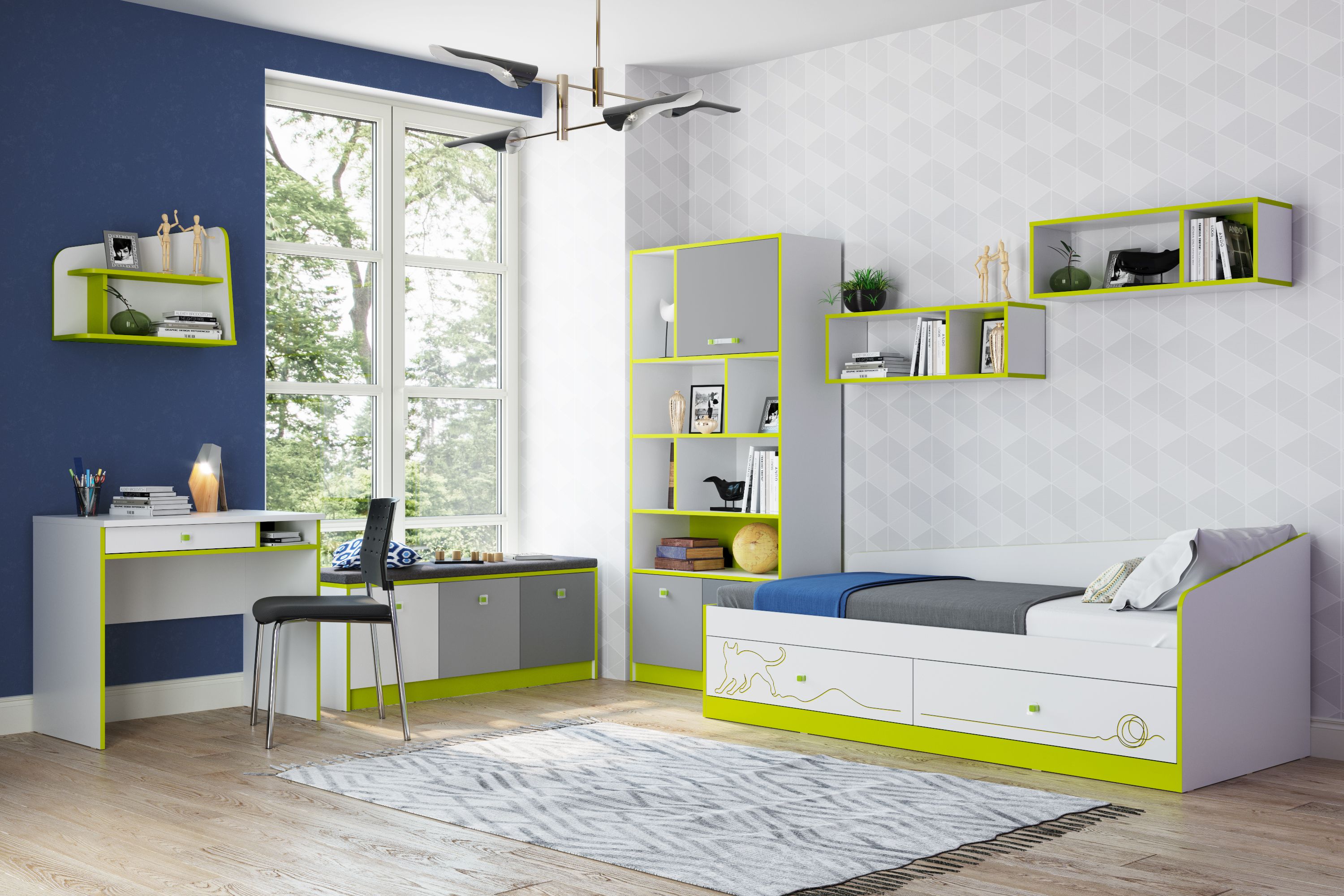 Детская Альфа - комфортная жизнь в ярких красках! Живописная серия мебели Альфа уютно оформит владения Ваших деток, с игровой для карапузов и эргономичным кабинетом для школьников. Модульная система, многообразие форм, позитив сочного цветового сопровождения - удачная возможность создать Мир счастливого детства. Предлагаемые элементы обстановки разработаны с учётом всех возможных размеров Вашей детской комнаты, количества и возраста деток. Односпальная кроватка, кровать-чердак, двухъярусная кровать с дополнительным диванным блоком - и это только выбор спального места! Письменный стол рабочего уголка школьника можно доукомплектовать надстройкой, двумя полками, стеллажами и тумбами в трёх размерах! Система хранения детской Альфа дополнена гардеробным комплексом - двустворчатым шкафом для одежды и высоким комодом для вещей. Приятные мелочи мебели Альфа - мягкое сиденье на тумбе, ящики для белья в кровати, креативный мебельный ансамбль кровати-чердака. Дизайнерская находка коллекции мебели Альфа - удивительный колористический баланс строгого монохрома со всплесками ярких красок. А изготовление мебели Альфа в двух цветовых вариантах, Солнечный свет и Зелёный лайм, позволит Вам составить необыкновенный гарнитур. Декоративное украшение мебели - милые принты с животными, цветная облицовка торцов деталей, эксклюзивные ручки с покрытием софт-тач. Интерьер детской с мебелью Альфа будет лёгким и ненавязчивым, всё пространство которого пропитано светом, воздухом и свободой. Выполнена мебель Альфа из качественной, экологически чистой ламинированной ДСП 16 мм. класса Е1, разрешённого для детской мебели. В производстве детской Альфа использована современная фурнитура, отличающаяся высокой надёжностью и долговечностью. Распашные двери мебели на четырёхшарнирных петлях без доводчиков, ручки - прозрачный пластик, цветное основание с покрытием софт-тач. Выдвижные ящики мебели Альфа на шариковых направляющих полного выдвижения, откидные фасады модулей - на газовых лифтах. Модули серии Альфа поставляются в разобранном виде, упакованные в 4-х слойный гофрокартон с инструкцией по сборке и фурнитурой.
