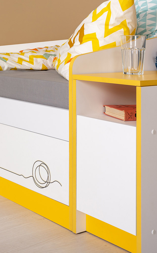 Детская Альфа - комфортная жизнь в ярких красках! Живописная серия мебели Альфа уютно оформит владения Ваших деток, с игровой для карапузов и эргономичным кабинетом для школьников. Модульная система, многообразие форм, позитив сочного цветового сопровождения - удачная возможность создать Мир счастливого детства. Предлагаемые элементы обстановки разработаны с учётом всех возможных размеров Вашей детской комнаты, количества и возраста деток. Односпальная кроватка, кровать-чердак, двухъярусная кровать с дополнительным диванным блоком - и это только выбор спального места! Письменный стол рабочего уголка школьника можно доукомплектовать надстройкой, двумя полками, стеллажами и тумбами в трёх размерах! Система хранения детской Альфа дополнена гардеробным комплексом - двустворчатым шкафом для одежды и высоким комодом для вещей. Приятные мелочи мебели Альфа - мягкое сиденье на тумбе, ящики для белья в кровати, креативный мебельный ансамбль кровати-чердака. Дизайнерская находка коллекции мебели Альфа - удивительный колористический баланс строгого монохрома со всплесками ярких красок. А изготовление мебели Альфа в двух цветовых вариантах, Солнечный свет и Зелёный лайм, позволит Вам составить необыкновенный гарнитур. Декоративное украшение мебели - милые принты с животными, цветная облицовка торцов деталей, эксклюзивные ручки с покрытием софт-тач. Интерьер детской с мебелью Альфа будет лёгким и ненавязчивым, всё пространство которого пропитано светом, воздухом и свободой. Выполнена мебель Альфа из качественной, экологически чистой ламинированной ДСП 16 мм. класса Е1, разрешённого для детской мебели. В производстве детской Альфа использована современная фурнитура, отличающаяся высокой надёжностью и долговечностью. Распашные двери мебели на четырёхшарнирных петлях без доводчиков, ручки - прозрачный пластик, цветное основание с покрытием софт-тач. Выдвижные ящики мебели Альфа на шариковых направляющих полного выдвижения, откидные фасады модулей - на газовых лифтах. Модули серии Альфа поставляются в разобранном виде, упакованные в 4-х слойный гофрокартон с инструкцией по сборке и фурнитурой.