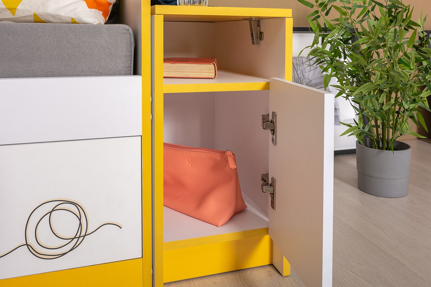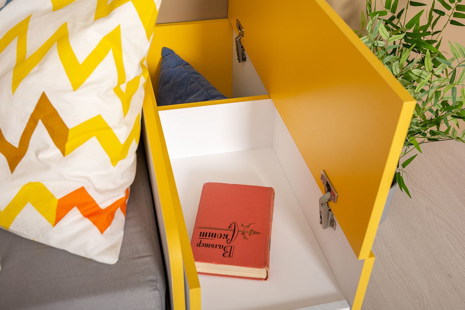 Тумба Альфа 13.53 с оригинальной откидной крышкой - удобный доступ к атрибутам отдыха со всех сторон! Конструкция тумбы Альфа 13.53 предусматривает распашное отделение (дверка открывается за край) и две ниши под откидной крышкой. Глубина тумбы Альфа 13.53 позволяет ей стать идеальной прикроватной тумбой кровати с ящиками Альфа 11.21. Универсальная сборка тумбы 13.53 детской Альфа расширит круг возможных мебельных комбинаций. Тумба Альфа 13.53 - элемент из набора мебели для детской комнаты Альфа.