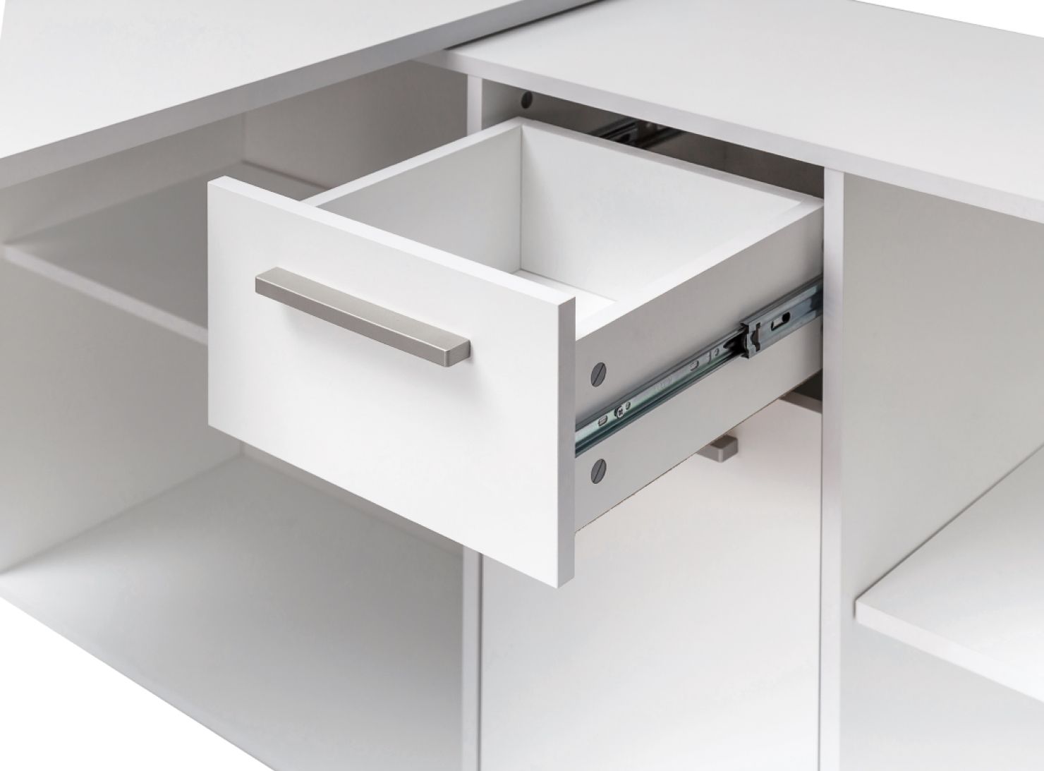 Система хранения стола состоит из тумбы с четырьмя открытыми нишами