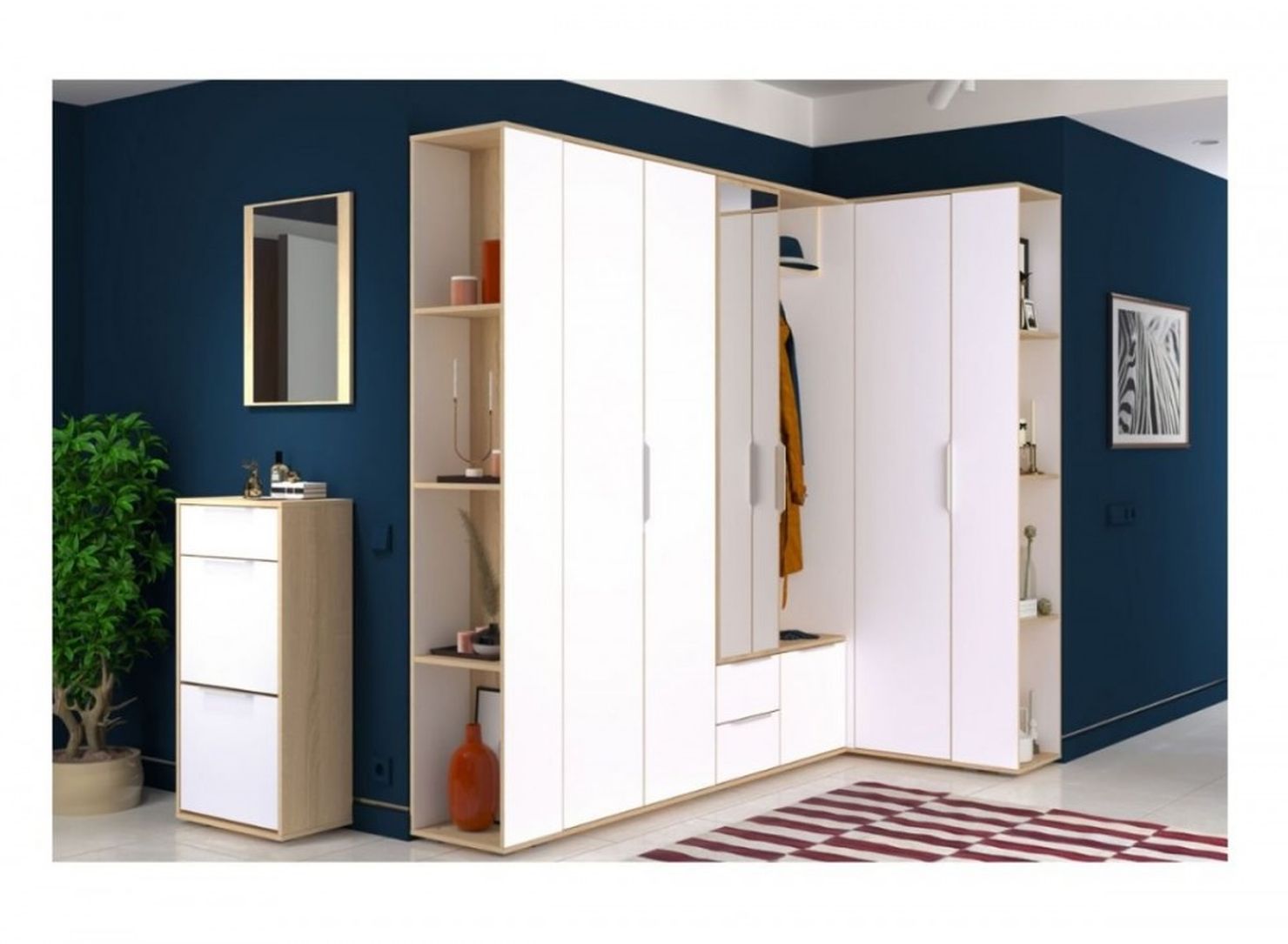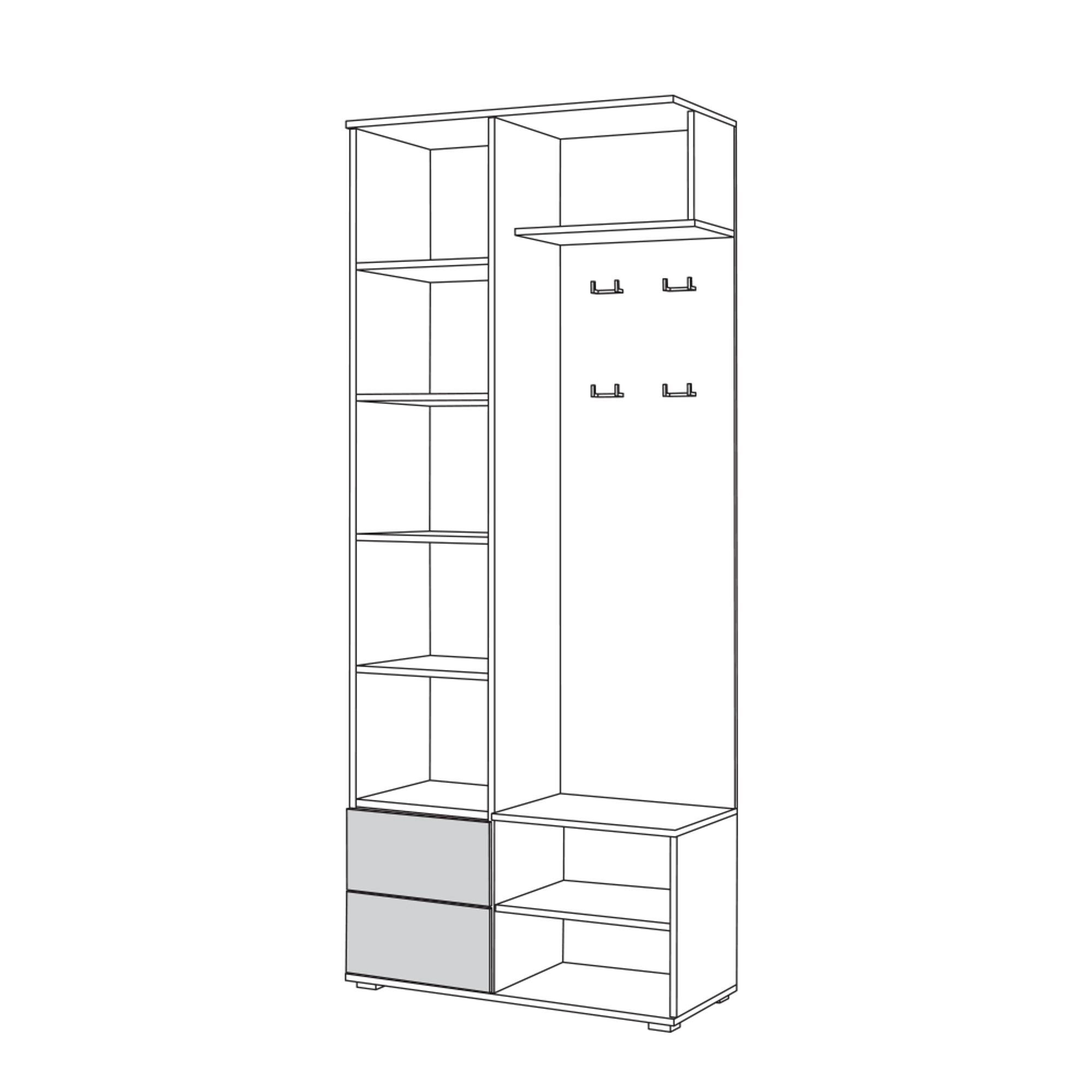 полку для шапок, открытую вешалку и тумбу для обуви.