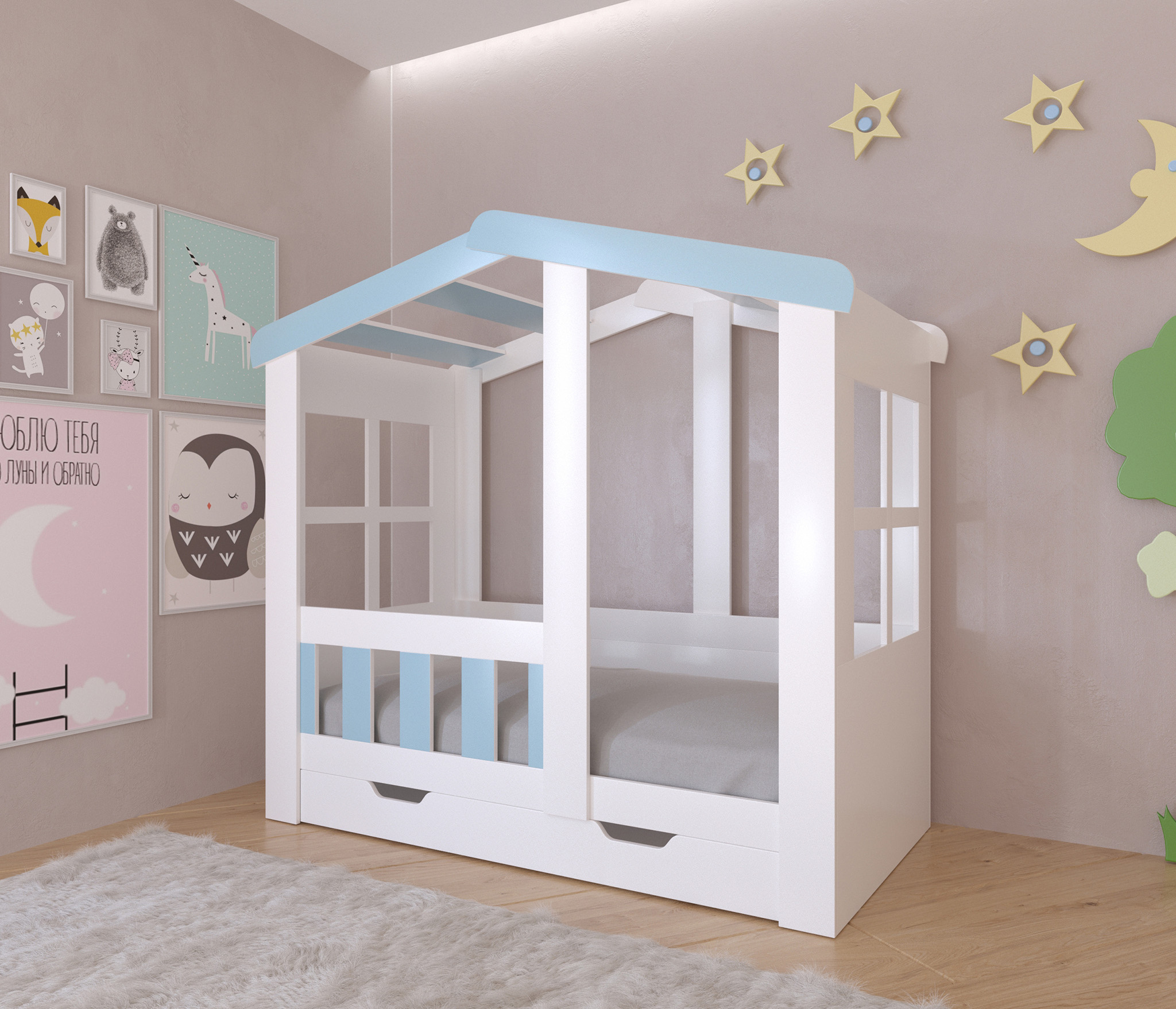 Кровать одноярусная Астра домик представляет собой стильно оформленную кровать для малышей. Форма кровати позволяет детишкам чувствовать себя уютно в своем собственном домике. Большое разнообразие цветовых сочетаний позволит вписать кровать в любой интерьер. Так же кровать обладает вместительным ящиком, способным вместить в себя спальное белье, вещи или детские игрушки.